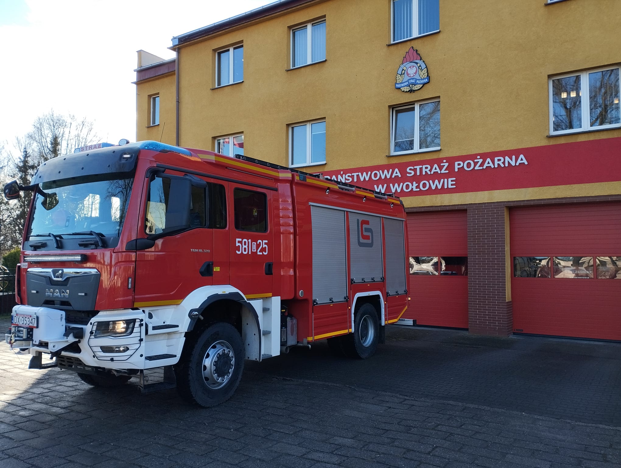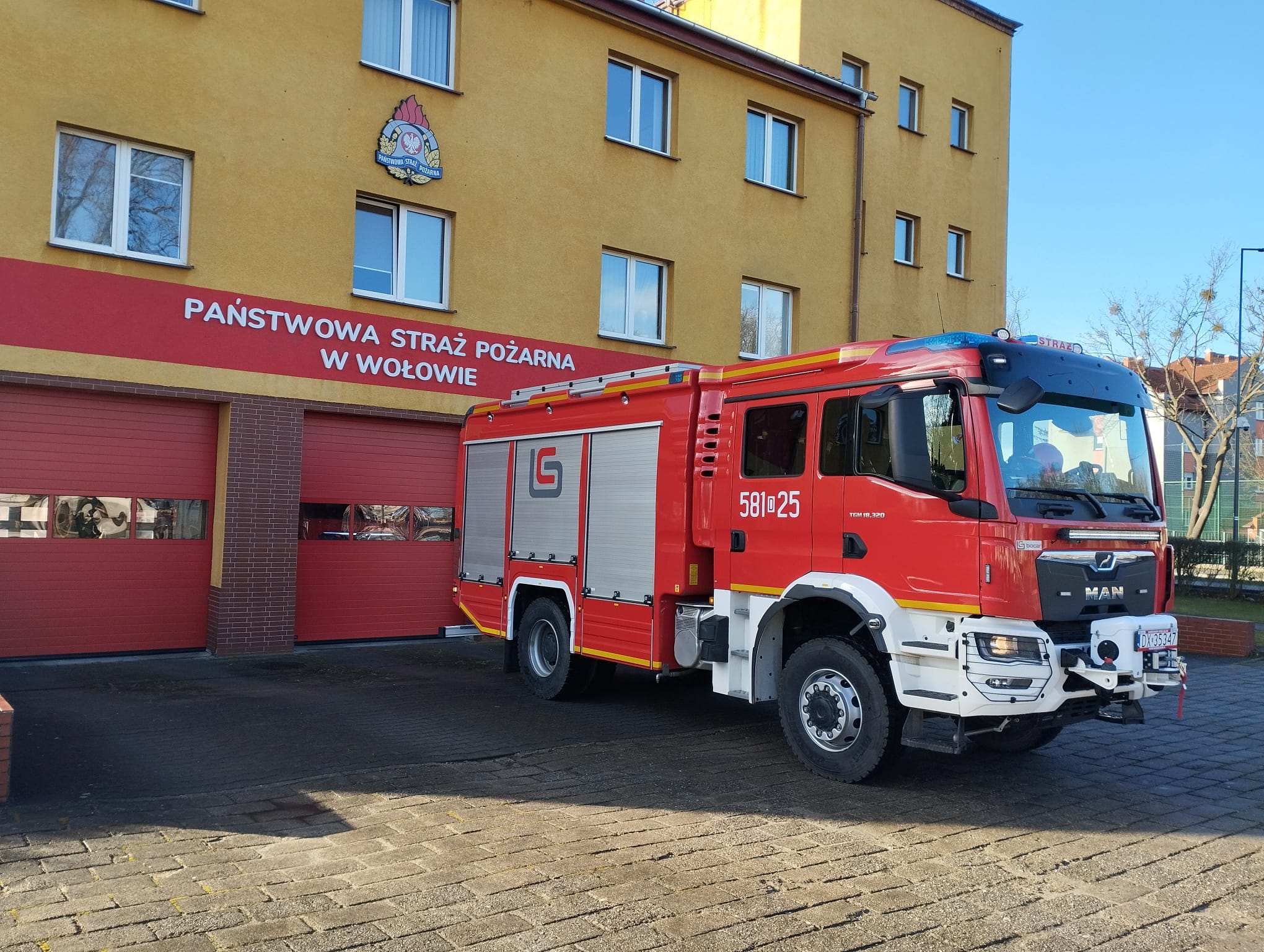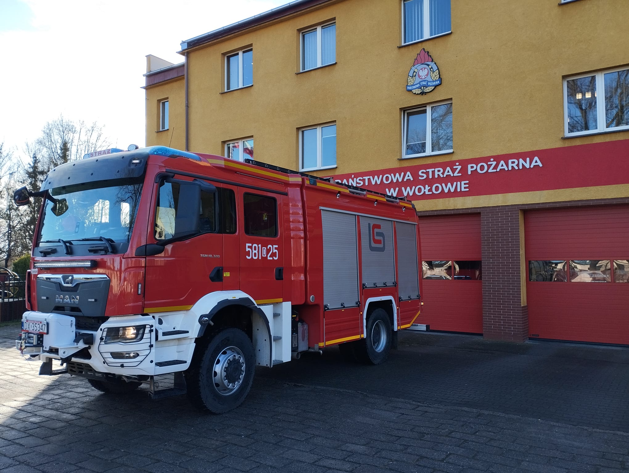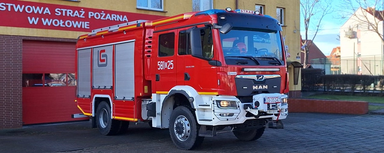 Komenda Powiatowa PSP w Wołowie otrzymała nowy ciężki samochód ratowniczo-gaśniczy na podwoziu MAN TGM 18.320. Pojazd z napędem terenowym 4x4, automatyczną skrzynią biegów posiada zbiornik wody o pojemności 5 m3 oraz autopompę o wydajności 3200 l/min.