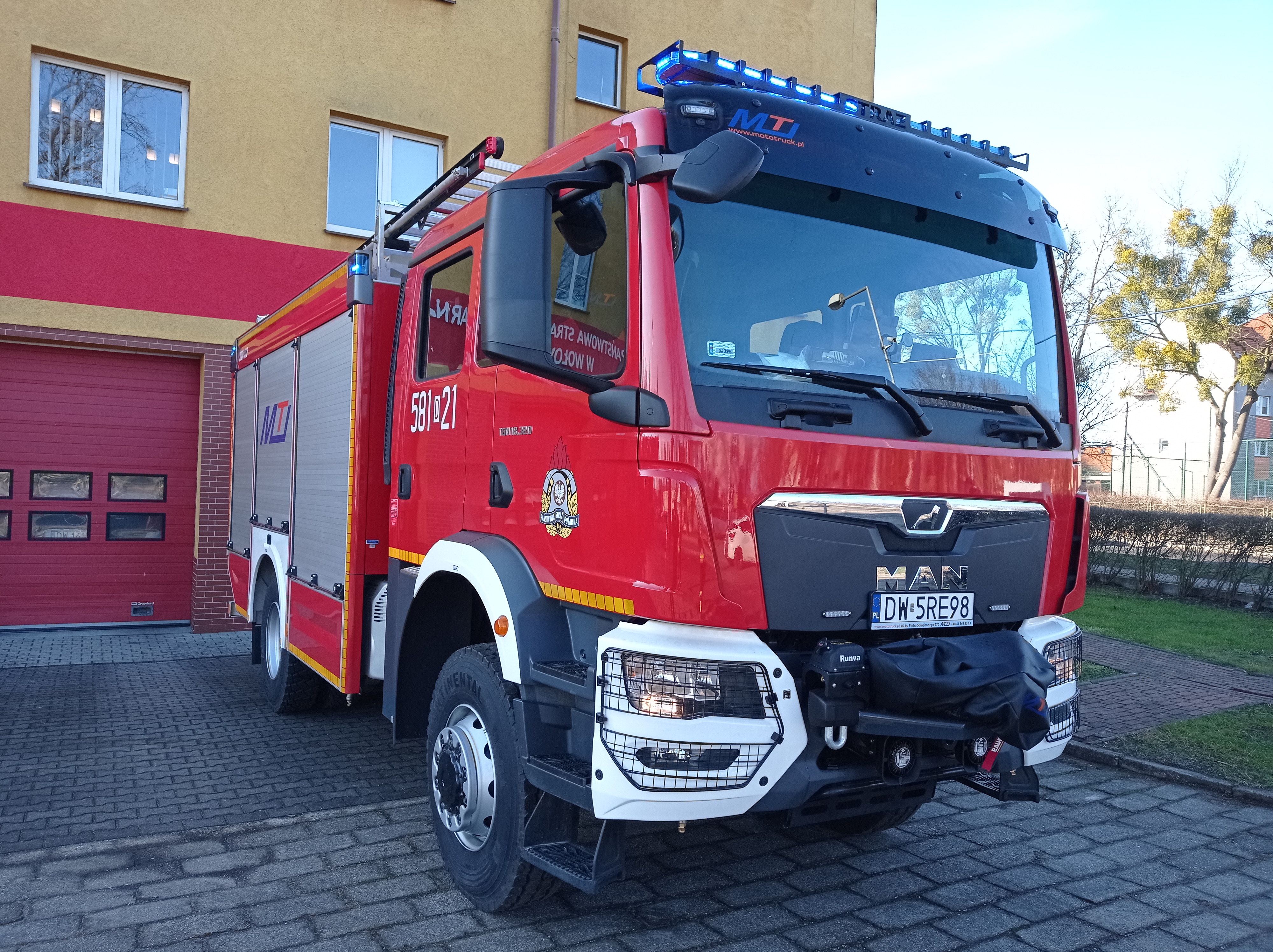 Komenda Powiatowa PSP w Wołowie otrzymała nowy średni samochód ratowniczo-gaśniczy na podwoziu MAN TGM 18.320. Pojazd z napędem terenowy 4x4 posiada zbiornik wody o pojemności 3 m3 oraz autopompę o wydajności 1600 l/min. Dodatkowo wyposażony jest w sprzęt do działań z zakresu ratownictwa technicznego na drogach.
