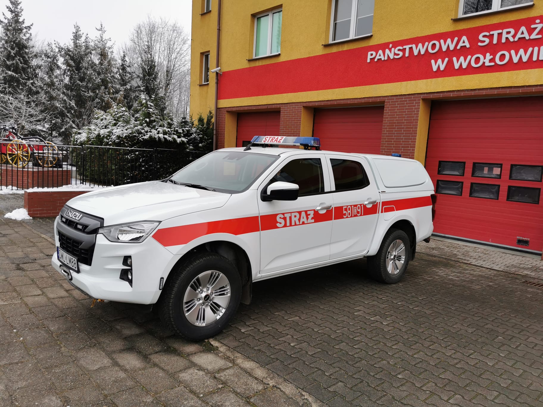 Komenda Powiatowa Państwowej Straży Pożarnej w Wołowie zakupiła nowy lekki samochód rozpoznawczo-ratowniczy typu SLRr na podwoziu ISUZU D-MAX z napędem terenowym 4x4.
