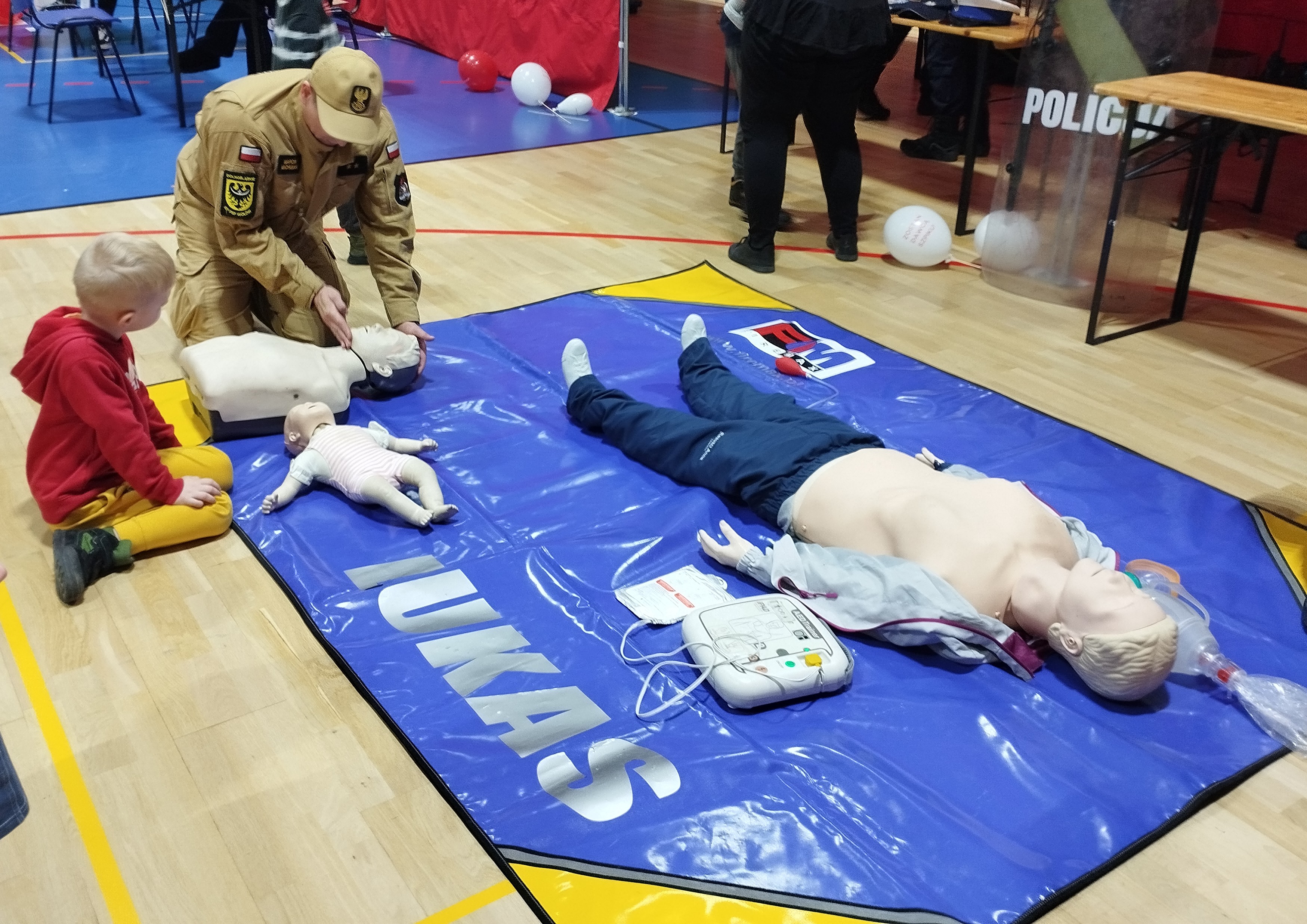 Każdy, kto w ten wyjątkowy dzień przybył na halę sportową Ośrodka Sportu i Rekreacji w Wołowie przy ulicy Panieńskiej, aby wesprzeć Wielką Orkiestrę Świątecznej Pomocy mógł zapoznać się z nowoczesnym sprzętem ratowniczym oraz przećwiczyć w praktyce wykonywanie resuscytacji krążeniowo-oddechowej połączonej z użyciem defibrylatora, a także zobaczyć jak strażacy udzielają kwalifikowanej pierwszej pomocy w stanach zagrożenia życia podczas przygotowanego pokazu.