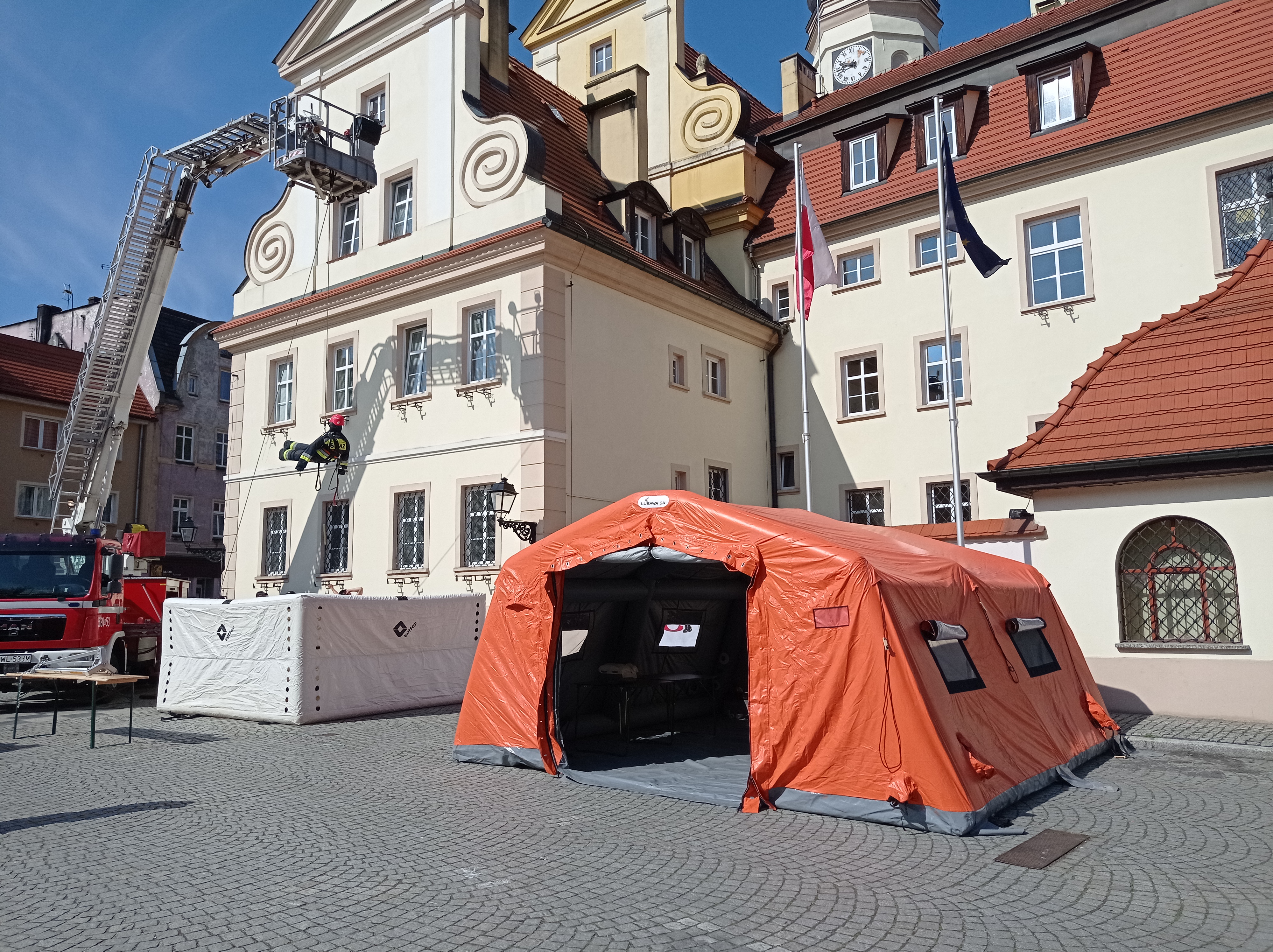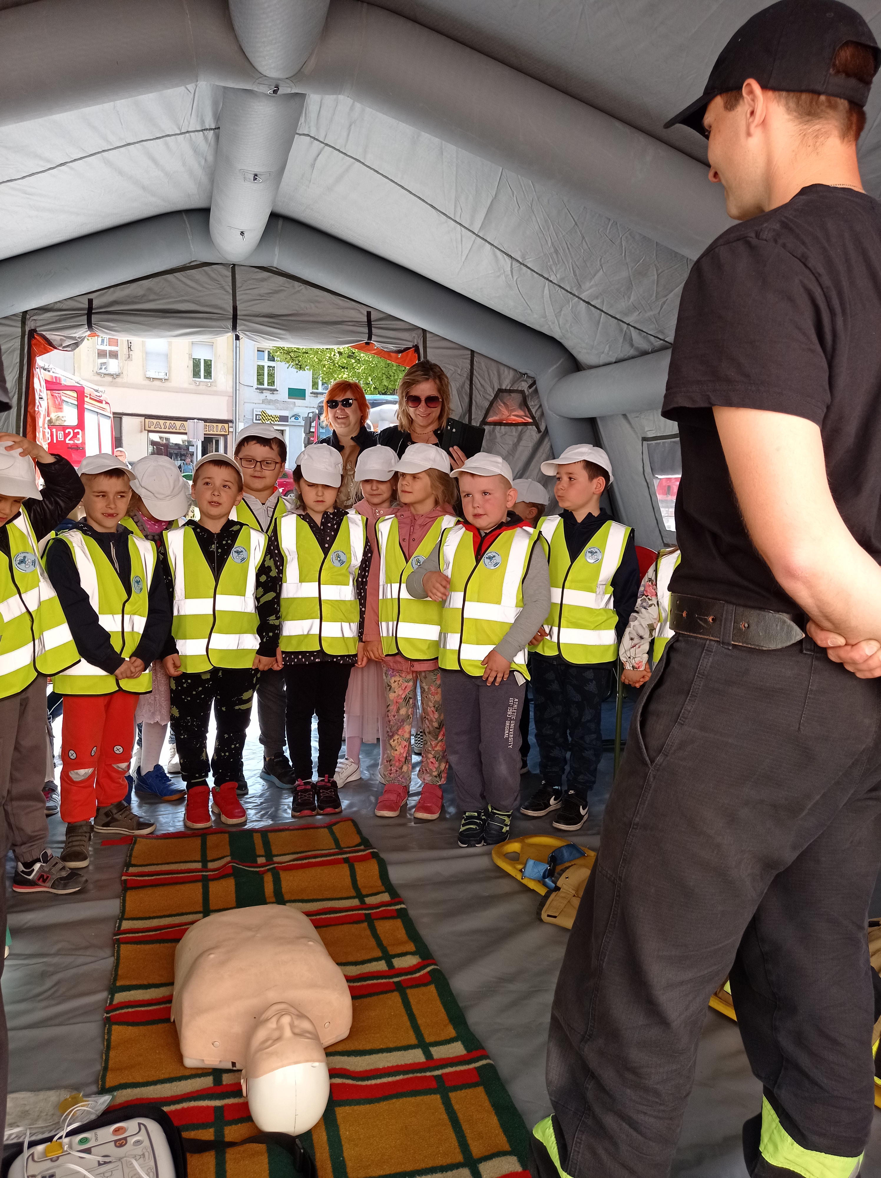 Każdy kto w ten piękny majowy dzień przybył na wołowski Rynek mógł zapoznać się z nowoczesnym sprzętem jakim dysponuje Komenda Powiatowa PSP w Wołowie, nauczyć się prawidłowo udzielać pierwszej pomocy, a także obsługi automatycznego defibrylatora, które coraz częściej stanowią wyposażenie budynków służb i instytucji państwowych, a także galerii handlowych, dworców kolejowych i lotnisk. Dodatkowo prowadzone były warsztaty z zakresu ratownictwa wysokościowego, w tym nauka wiązania węzłów ratowniczych.