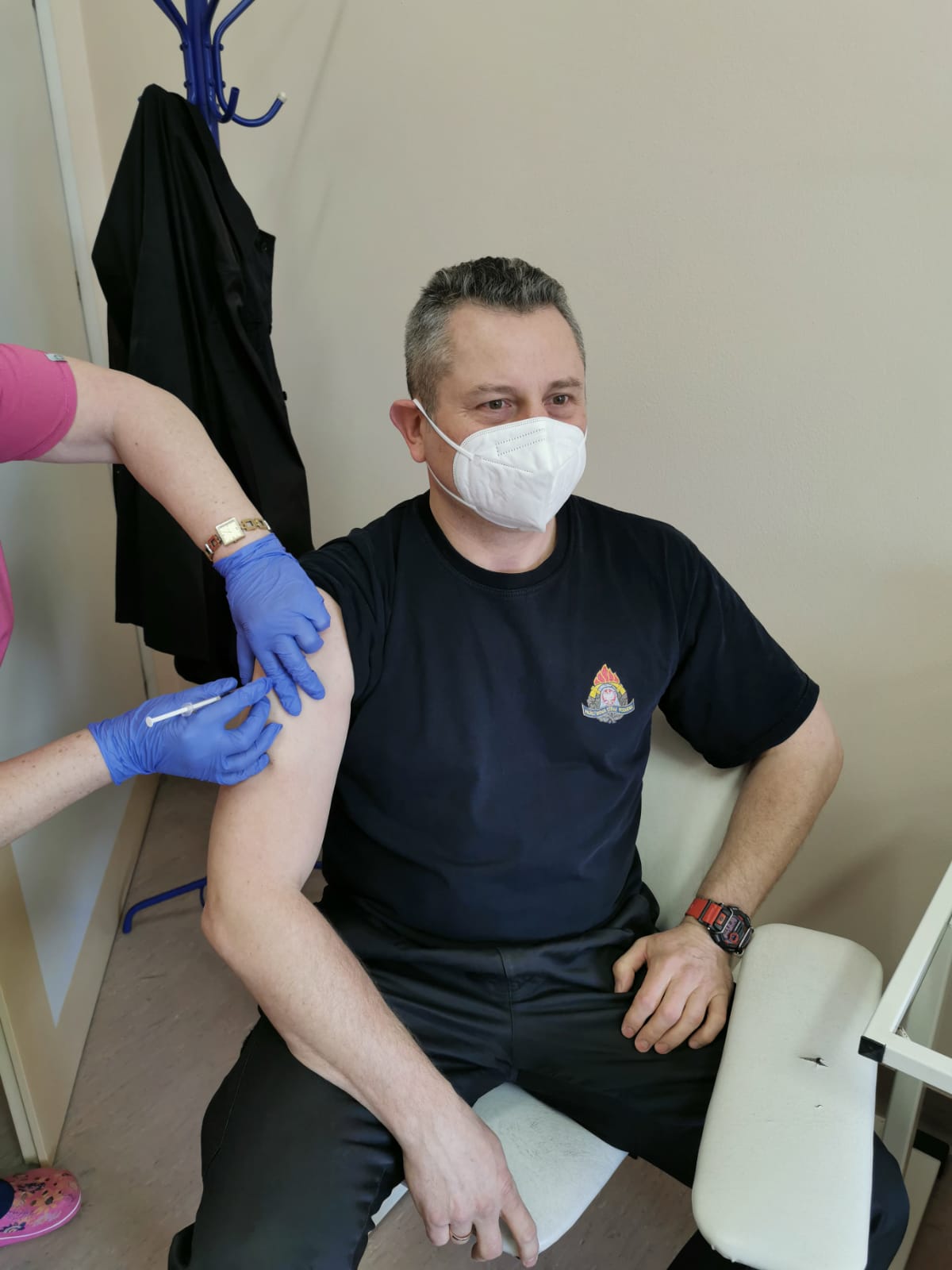 W dniu 29 marca br. jako pierwszy ze strażaków z Komendy Powiatowej Państwowej Straży Pożarnej w Wołowie do grona zaszczepionych pierwszą dawką dołączył Komendant Powiatowy st.bryg. Wojciech Maciejewski dając przykład wzorowej i odpowiedzialnej postawy dla innych strażaków oraz mieszkańców powiatu.