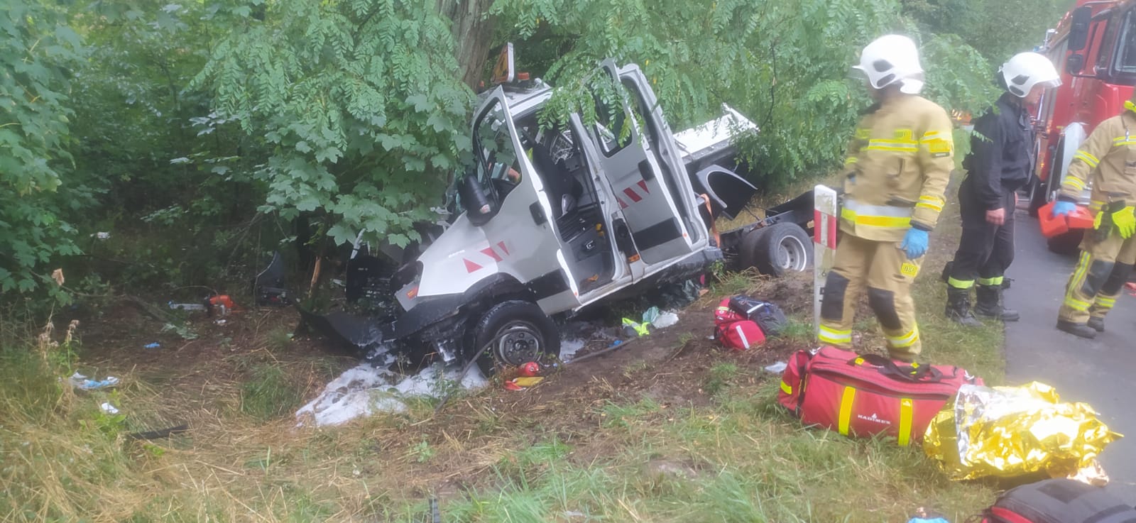 Z nieustalonych jak dotąd przyczyn kierujący samochodem dostawczym na łuku drogi stracił nad nim panowanie, po czym pojazd opuścił pas ruchu i uderzył w drzewo. W wyniku zdarzenia 6 osób, które podróżowały pojazdem zostały poszkodowane, z czego dwie zostały uwięzione w pojeździe.