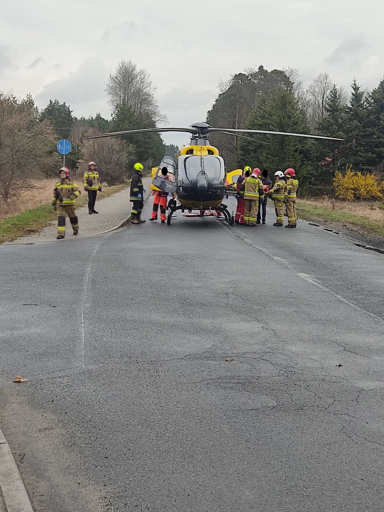 Przybyłe na miejsce zdarzenia zastępy straży zabezpieczyły miejsce zdarzenia, udzieliły kwalifikowanej pierwszej pomocy osobom poszkodowanym oraz przygotowały miejsce do lądowanie śmigłowca LPR, a następnie przekazały osoby poszkodowane Zespołowi Ratownictwa Medycznego.