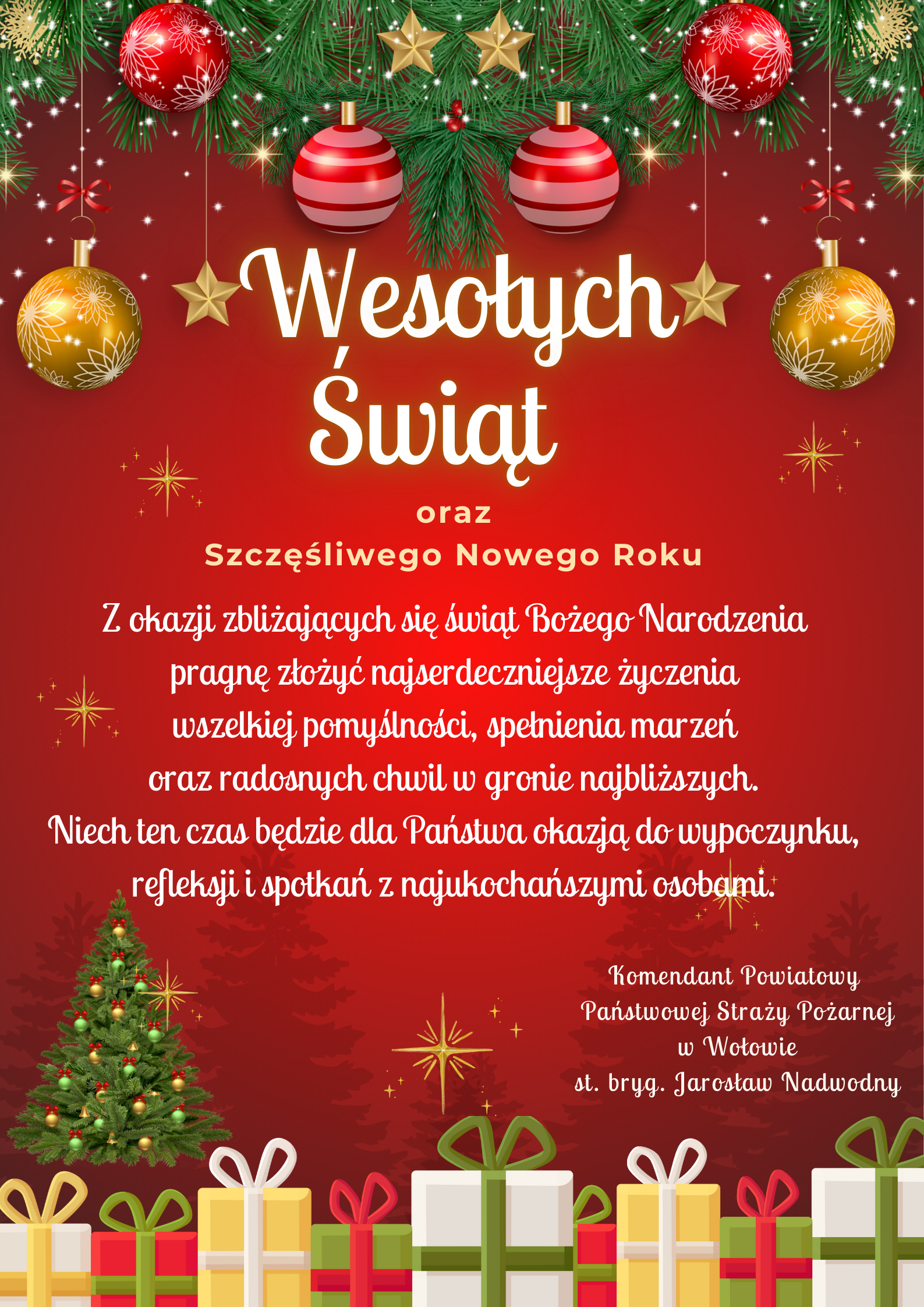 Życzenia Bożonarodzeniowe i Noworoczne Komendanta Powiatowego PSP w Wołowie