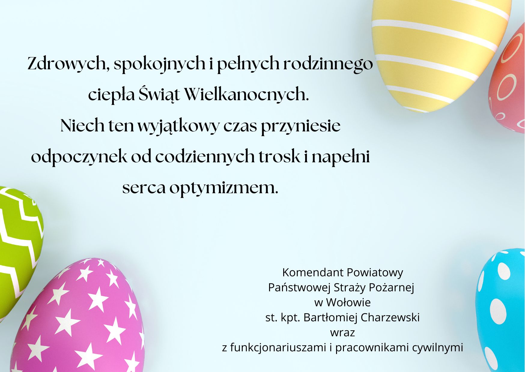 Życzenia Wielkanocne Komendanta Powiatowego PSP w Wołowie