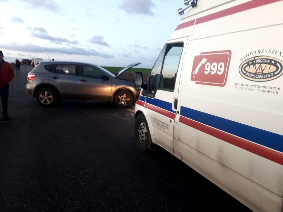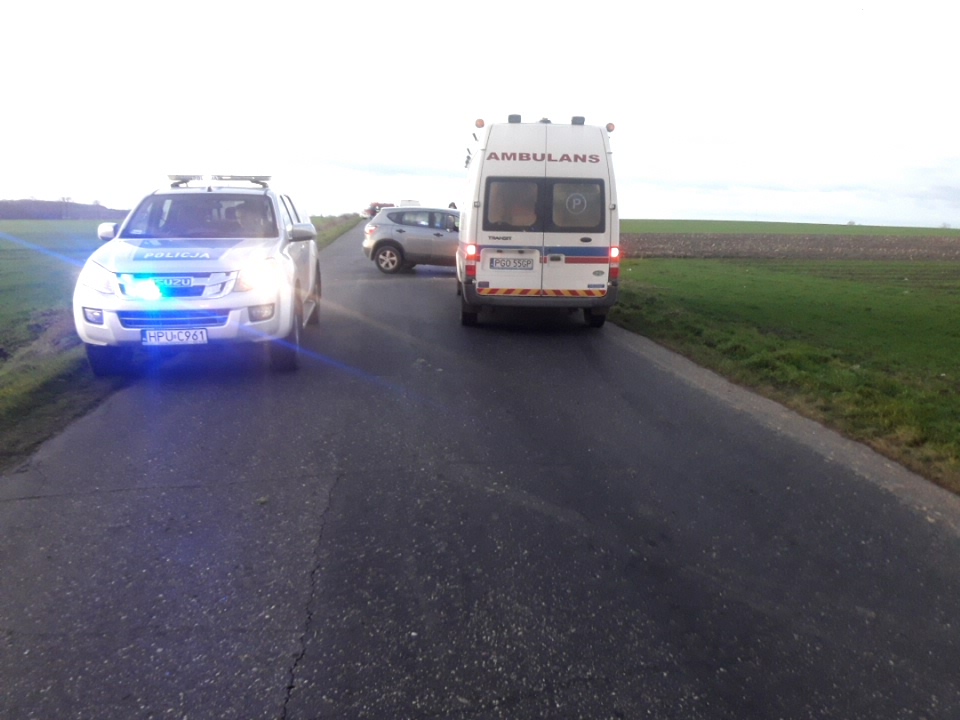 Po przybyciu zastępów straży pożarnej na miejsce zdarzenia zastano samochód osobowy stojący w poprzek drogi blokujący jeden pas drogi powiatowej oraz drugi samochód dostawczy stojący 100 metrów dalej na poboczu drogi. W samochodzie osobowym przebywała jedna osoba, natomiast w samochodzie dostawczym podróżowały dwie osoby, które opuściły pojazd przed przybyciem zastępów straży pożarnej. Policja zabezpieczyła teren wypadku oraz zamknęła drogę.