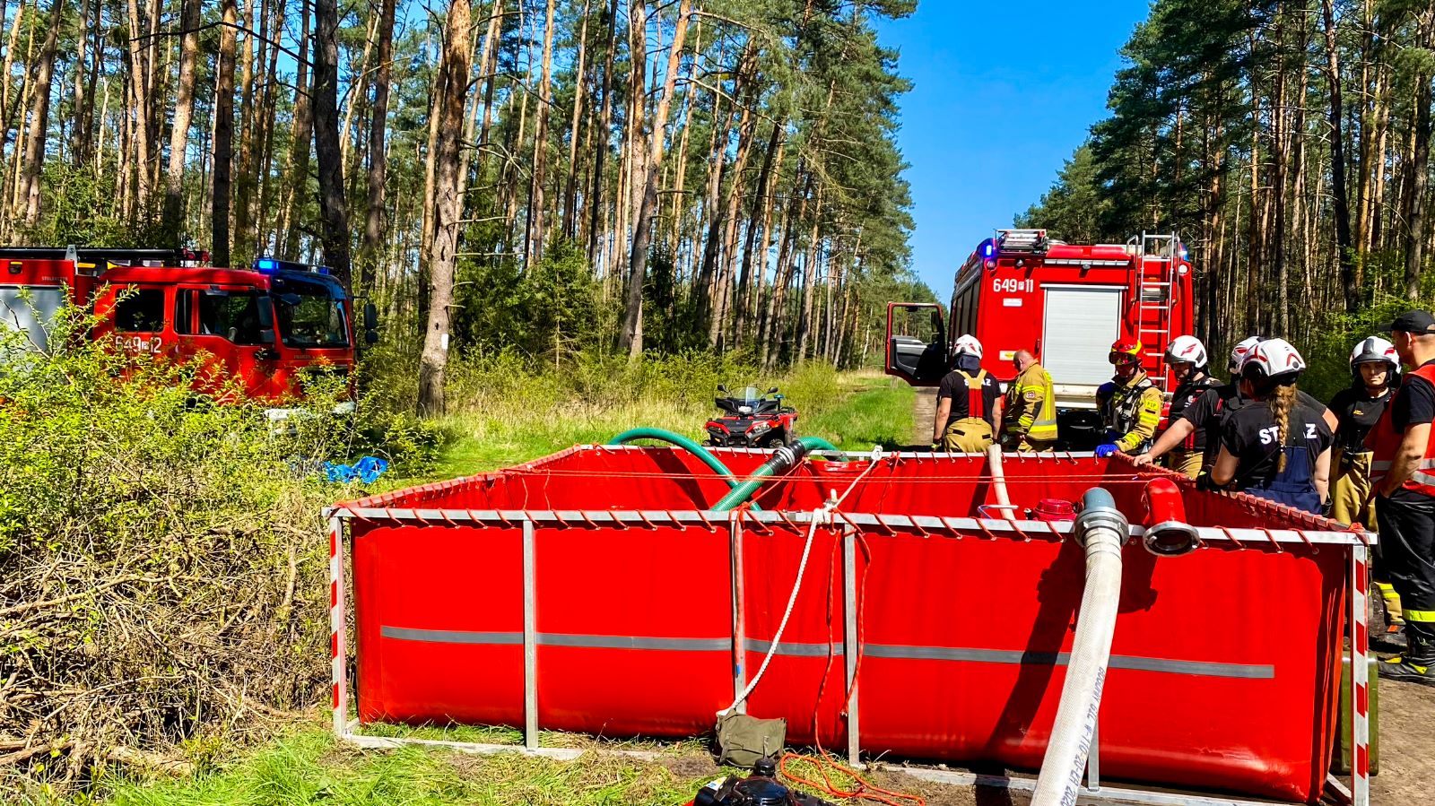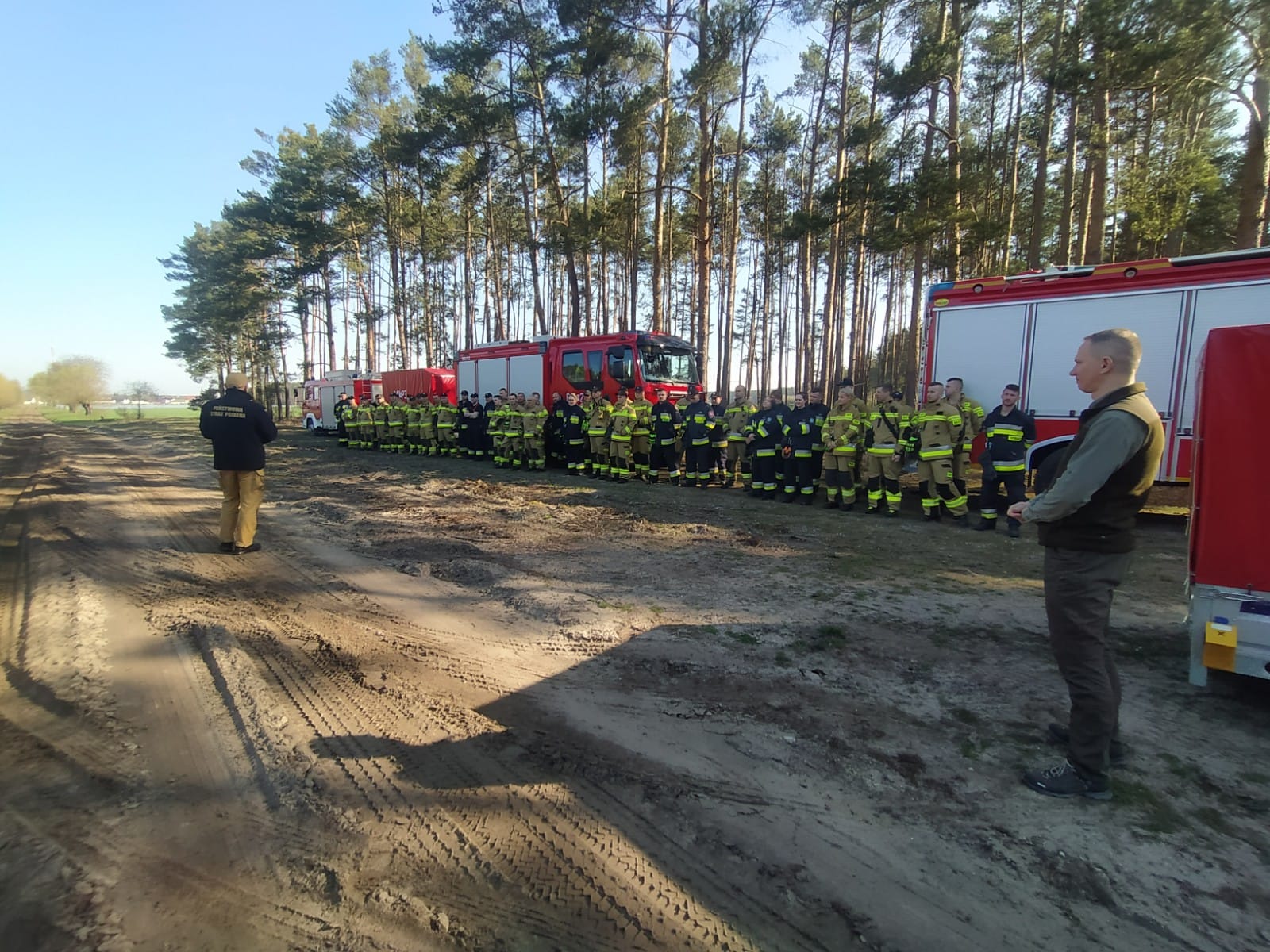 Nad właściwym oraz bezpiecznym przebiegiem ćwiczeń czuwali funkcjonariusze wolsztyńskiej komendy, grupa specjalnie ku temu wyznaczonych rozjemców. Całość wizytował Komendant Powiatowy PSP w Wolsztynie st. kpt. Przemysław Ruskowiak, z-ca Nadleśniczego Nadleśnictwa Sława Śląska pan Artur Niedzielski oraz specjalista do spraw ochrony lasów i ppoż. Po ukończonym założeniu oraz skompletowaniu sprzętu przedstawiono wstępne wnioski, podziękowano ćwiczącym za dyspozycyjność i poświęcony czas.