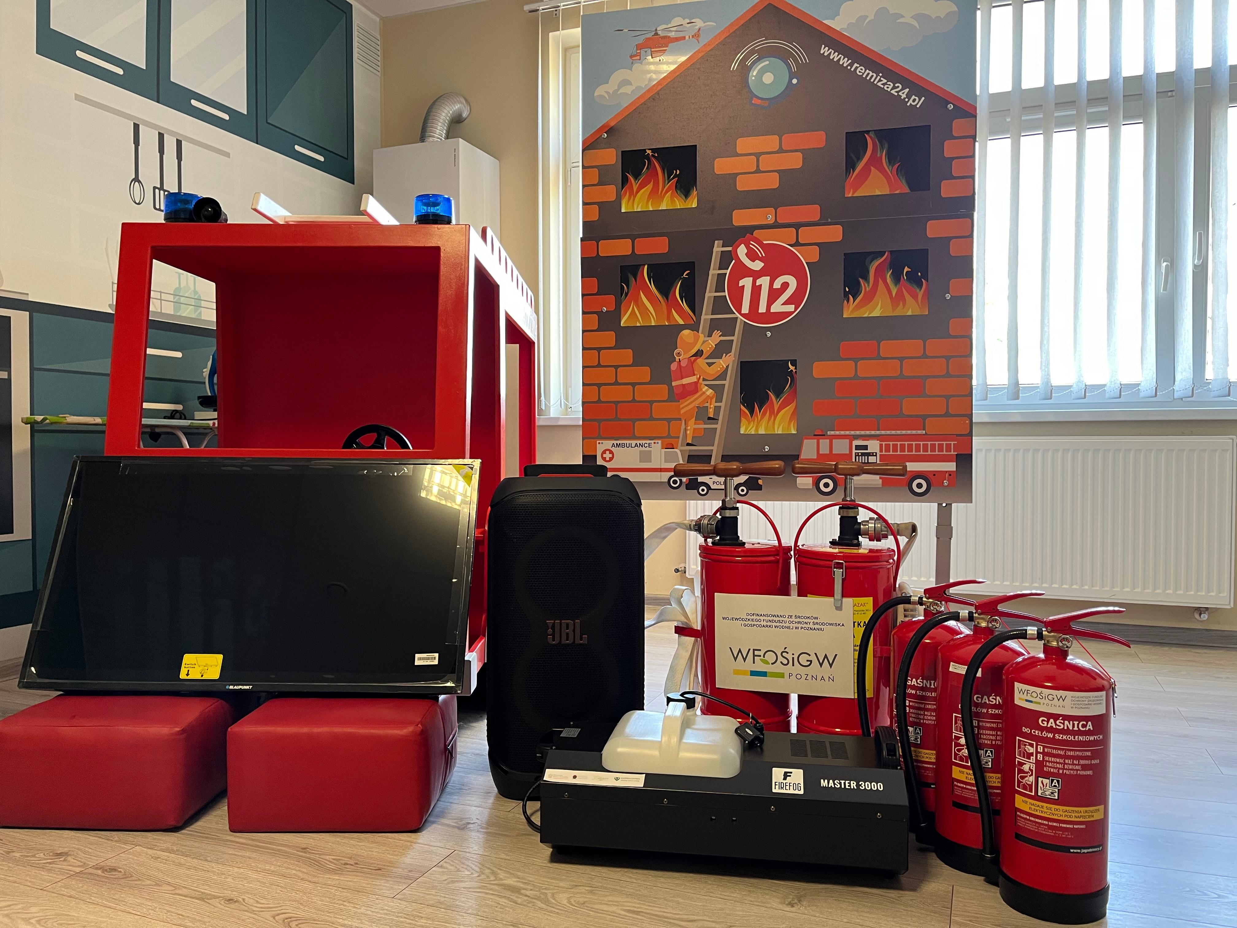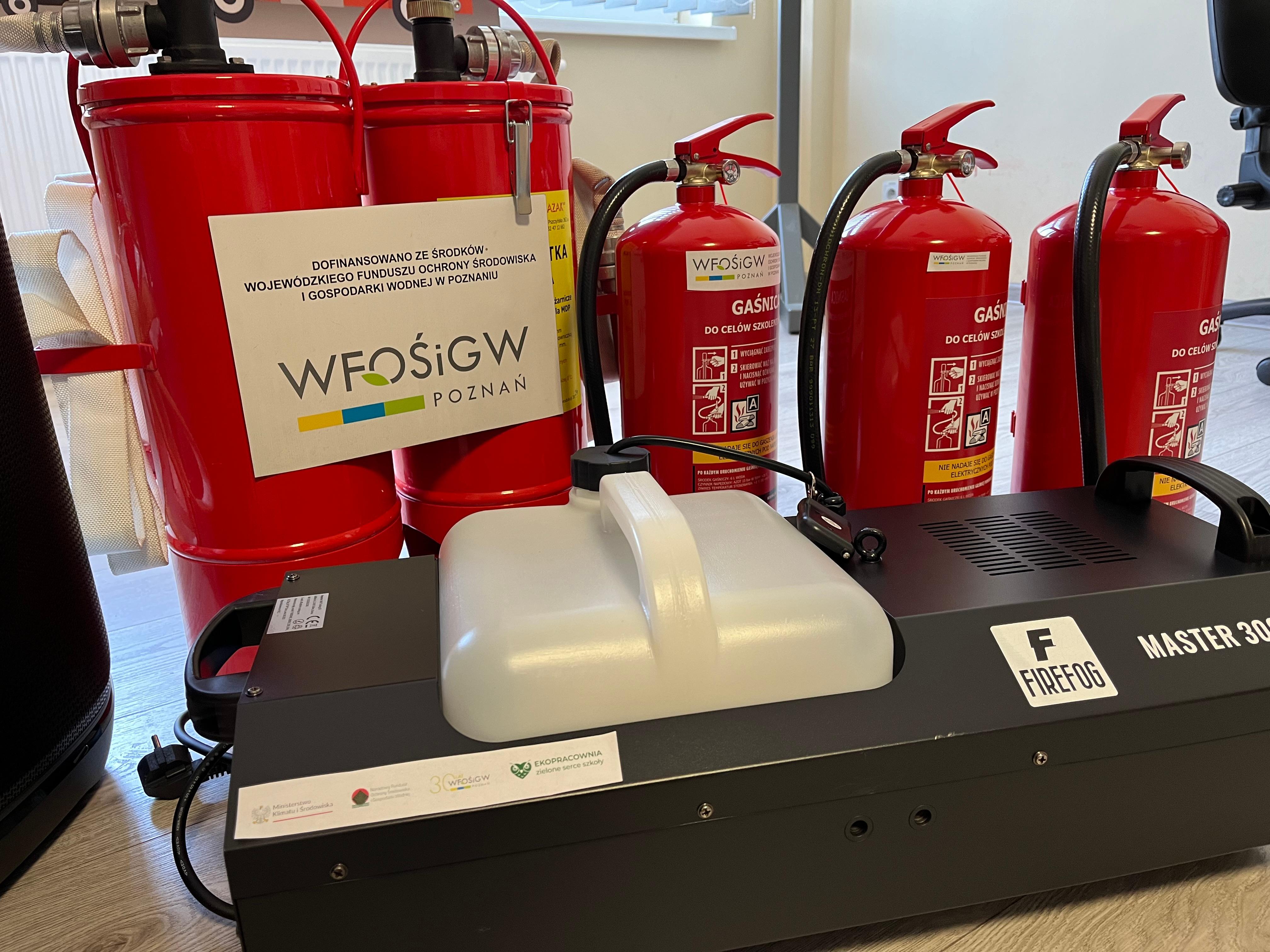 Dzięki realizacji przedsięwzięcia pn. „Doposażenie salki edukacyjnej w KP PSP w Wolsztynie” dokonano zakupu: domku strażackiego, zestawu głośników, gaśnic szkoleniowych, hydronetek, monitorów oraz zadymiarek, które wzbogaciły wyposażenie funkcjonującej od 2017 r. w Komendzie Powiatowej Państwowej Straży Pożarnej w Wolsztynie Sali Ognik.