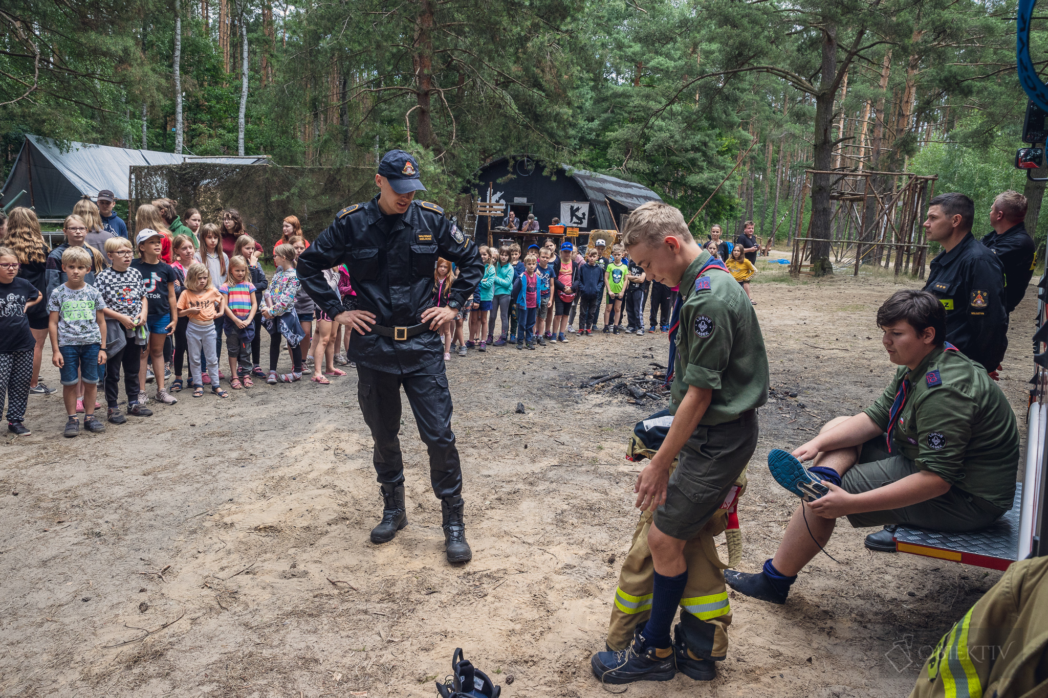 Ponadto, strażacy Jednostki Ratowniczo-Gaśniczej w Wolsztynie wspierali działania przedstawicieli komendy. Na prośbę uczestników, pojawiali się na terenie baz leśnych celem przeprowadzenia pogadanek edukacyjnych a także udzielenia odpowiedzi na często niełatwe, nurtujące harcerzy pytania. Bezpieczna ewakuacja, zasady obchodzenia się z ogniem otwartym, postępowanie w przypadku powstania pożaru czy też właściwe użytkowanie podręcznego sprzętu gaśniczego to tylko kilka z tematów jakie poruszane były na spotkaniach. Nie zabrakło również czasu na przybliżenie specyfiki strażackiej profesji czy też zapoznania się ze sprzętem jakim dysponują wolsztyńscy funkcjonariusze.