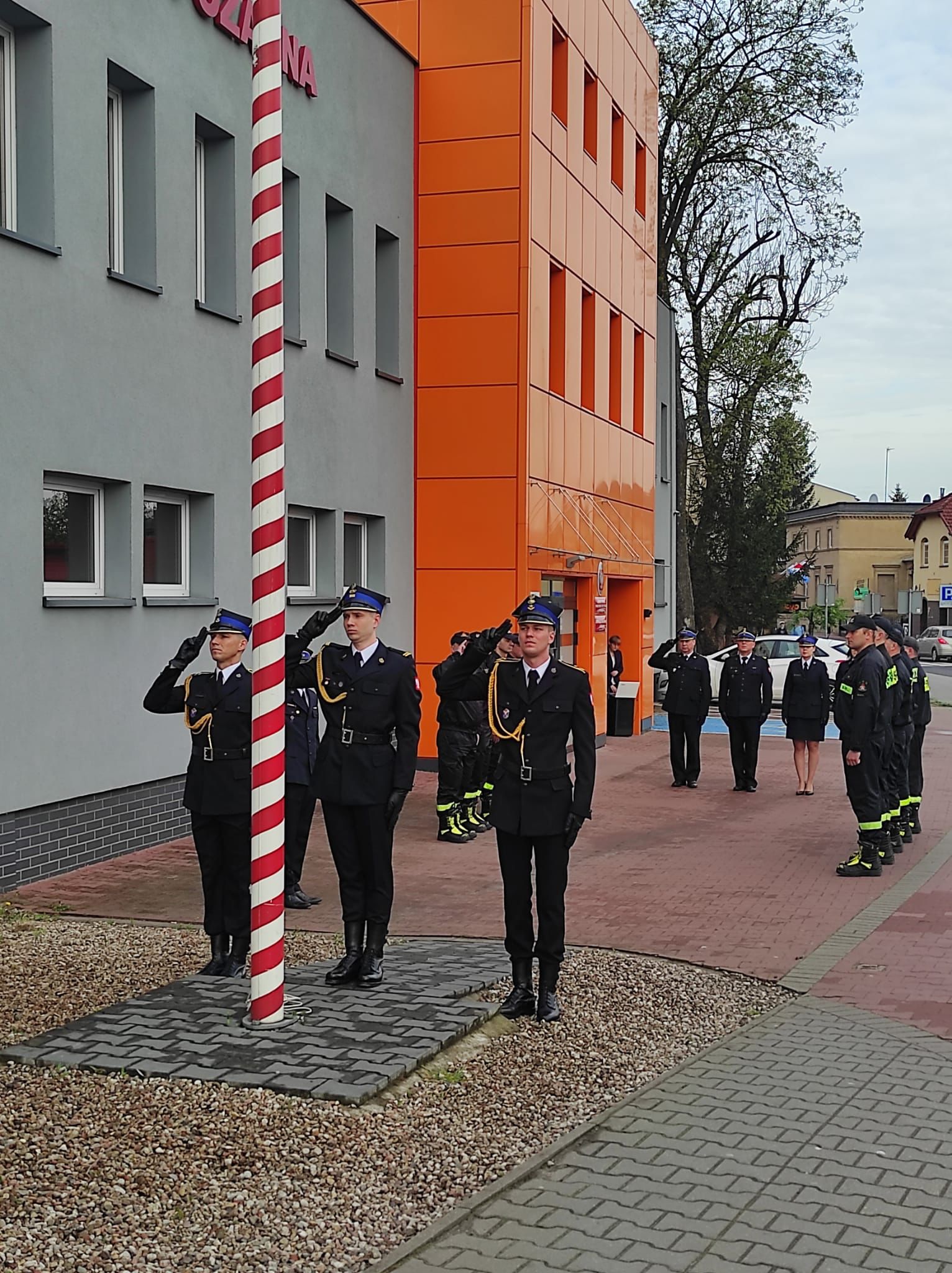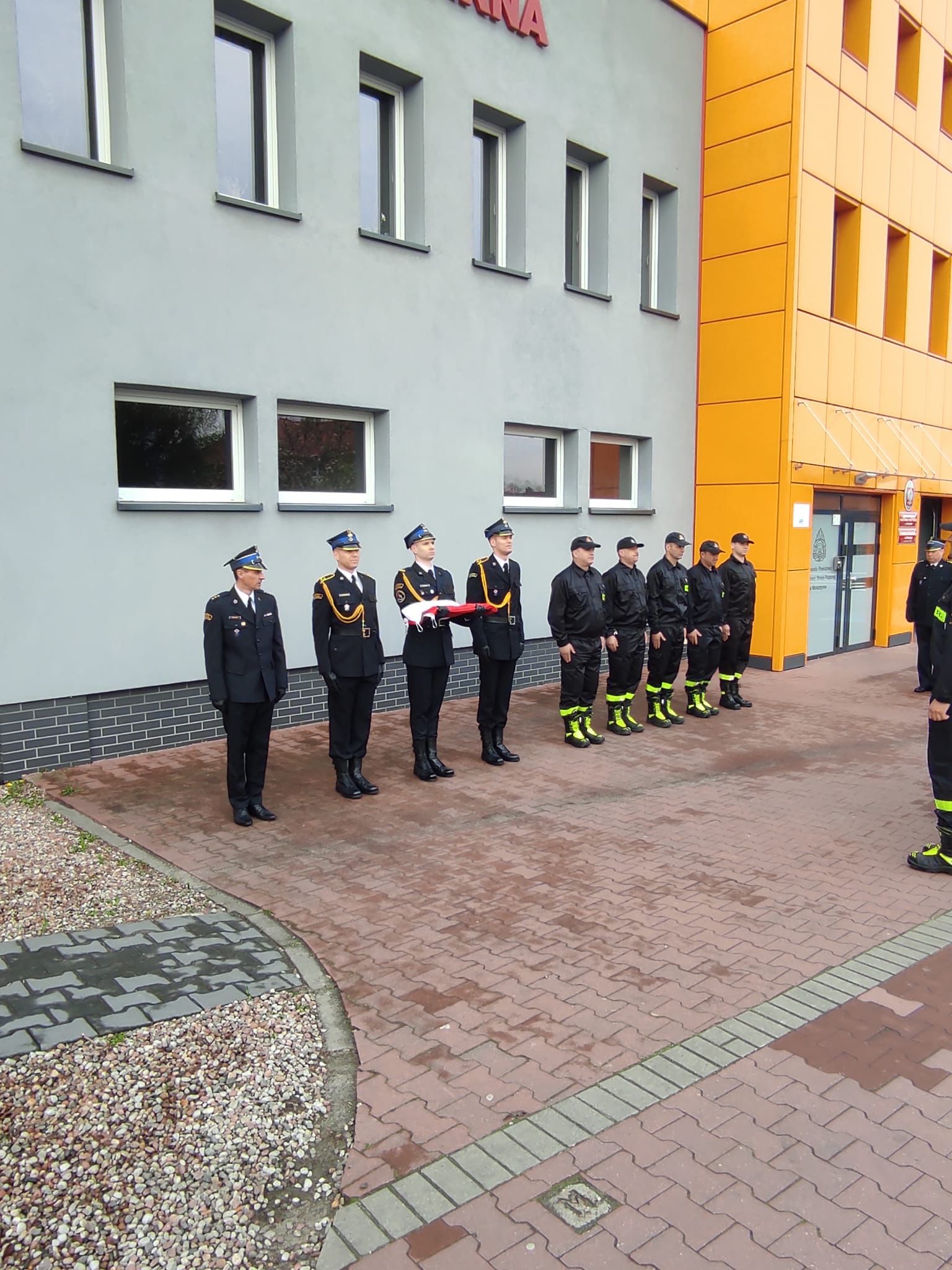 Podczas uroczystej zbiórki przed budynkiem komendy obecny był Komendant Powiatowy PSP w Wolsztynie - st. kpt. Przemysław Ruskowiak.