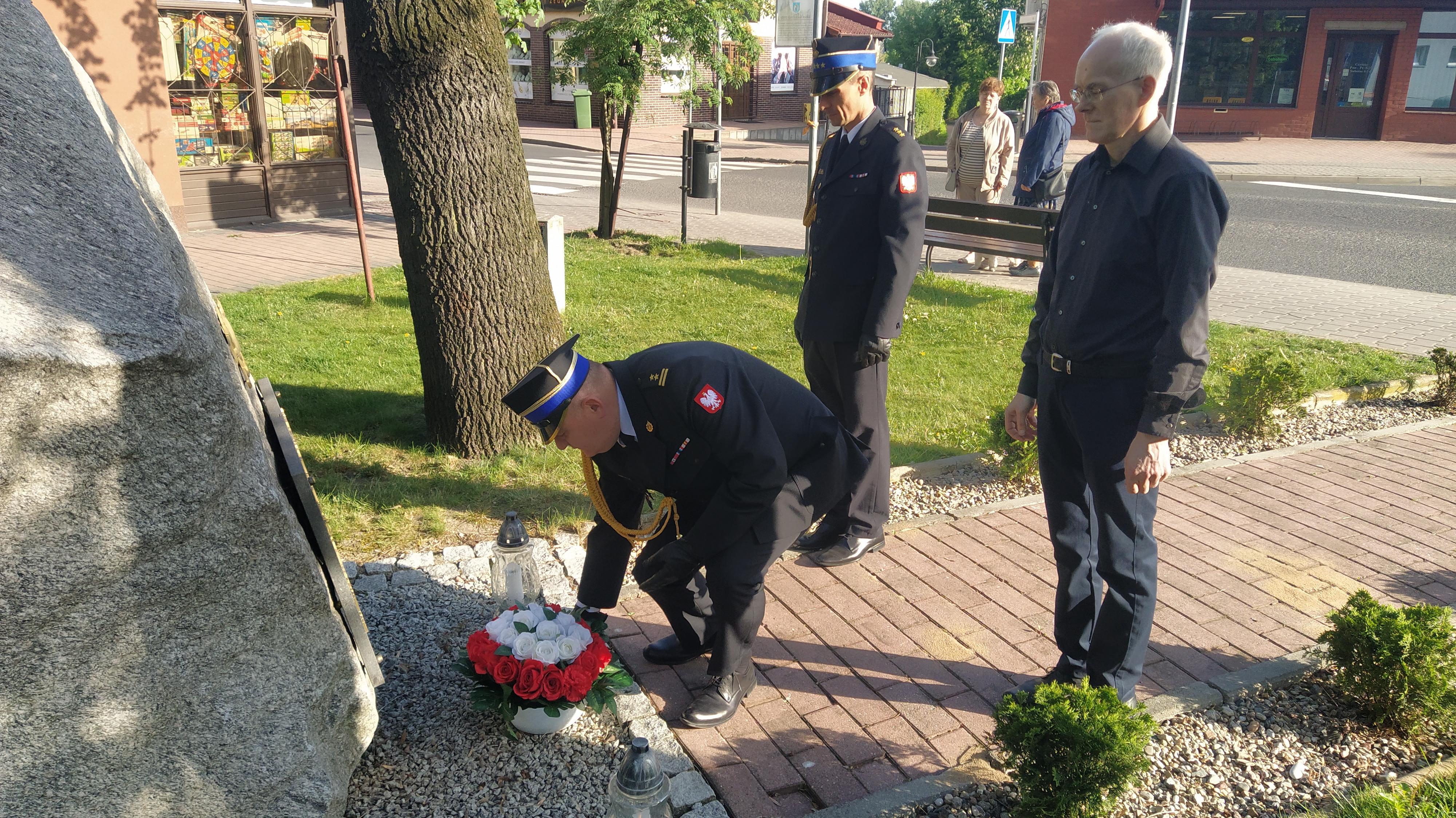 Po uroczystości złożono kwiaty pod pomnikiem poległych strażaków. Osobistego złożenia okolicznościowego wieńca dokonał bryg. Tomasz Lewandowski – p.o. Komendanta Powiatowego PSP w Wolsztynie w asyście kpt. Damiana Glapiaka – p.o. Zastępcy Komendanta Powiatowego PSP w Wolsztynie. W ten sposób, oddano hołd wszystkim tym, którzy na przestrzeni lat opuścili strażackie szeregi. Postawiony z inicjatywy wolsztyńskich strażaków pomnik przed budynkiem komendy, od 2000 roku, każdego dnia przypomina o tym, jak trudna a zarazem wymagająca jest codzienna służba na rzecz bezpieczeństwa mieszkańców