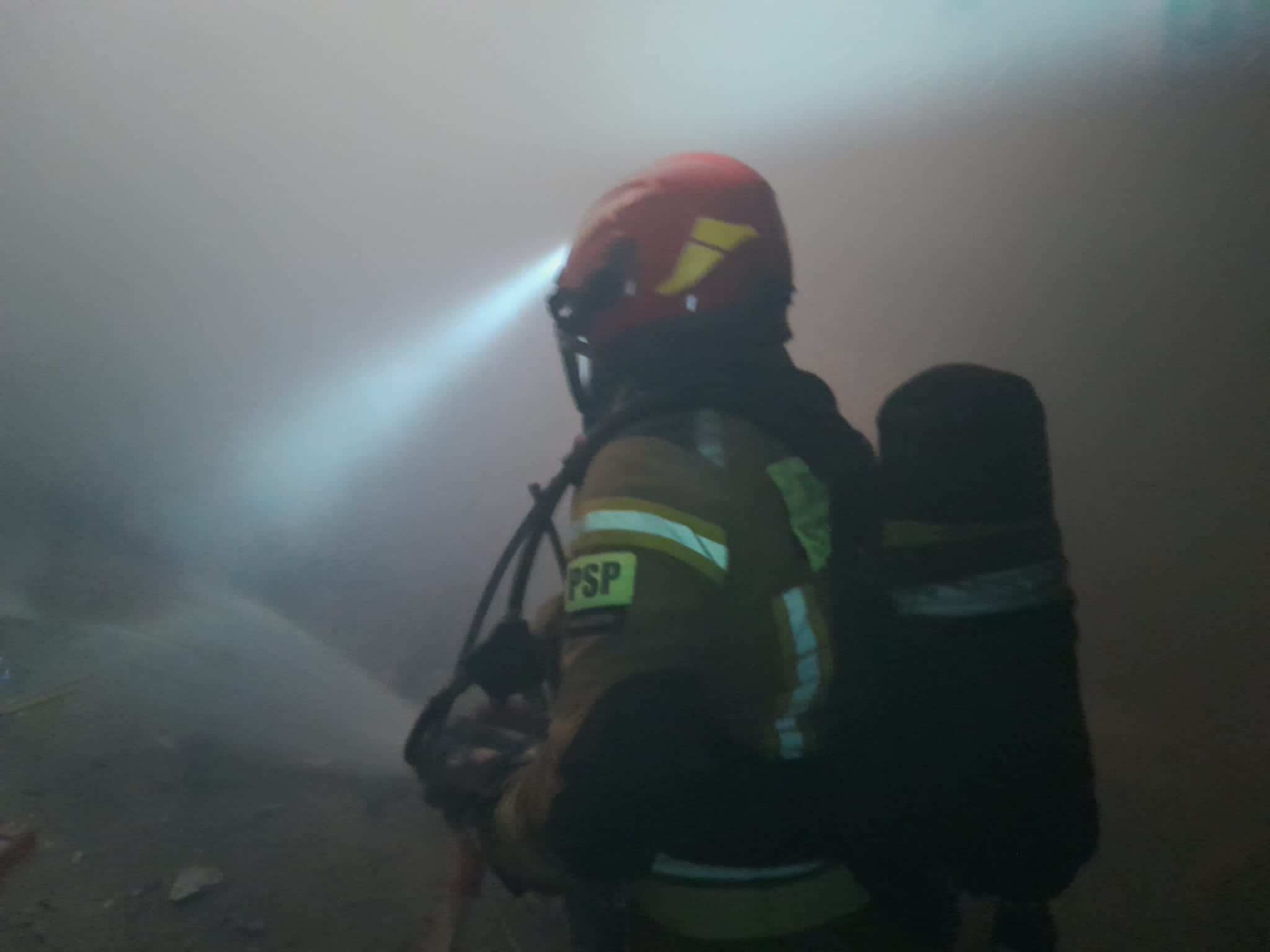 Po przybyciu na miejsce zdarzenia strażacy zauważyli silne zadymienie wydobywające się z otworów w dachu budynku. Aby dostać się do środka obiektu konieczne było użycie sprzętu burzącego. Sprawne działanie strażaków pozwoliło szybko odnaleźć i ugasić źródło pożaru, które znajdowało się w jednym z kilkunastu pomieszczeń. W większości paliły się zgromadzone w jednym miejscu elementy mebli, odzieży, a nawet zabawek dziecięcych. Sytuacja została opanowana zanim pożar zdążył się rozprzestrzenić i stworzyć zagrożenie budynkom mieszkalnym w sąsiedztwie. Po przeszukaniu obiektu ustalono, że nie ma osób poszkodowanych i w trakcie działań nikt nie znajdował się wewnątrz budynku. W akcji gaśniczej udział brało łącznie 19 strażaków.
