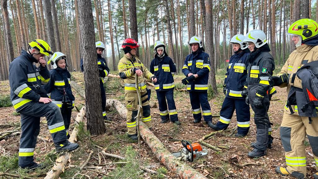 W niedzielę 26 marca kursanci również spotkali się w lesie w Perkowie. Tym razem jednak nie używali sprzętu gaśniczego. Głównym tematem zajęć był sprzęt mechaniczny, a w szczególności pilarki. Spotkanie rozpoczęło się oczywiście od przypomnienia podstawowych zasad BHP. Podkreślano jak ważne przy pracy pilarką są środki ochrony indywidualnej i praca zgodnie z zasadami bezpieczeństwa. Kolejny etap to zapoznanie się z budową sprzętu mechanicznego oraz jego prawidłową eksploatacją. Po uzyskaniu podstawowej wiedzy teoretycznej przyszedł czas na naukę praktyczną. Kursanci okrzesywali i przycinali drzewa, stosując podstawowe techniki cięcia pod okiem instruktorów.
