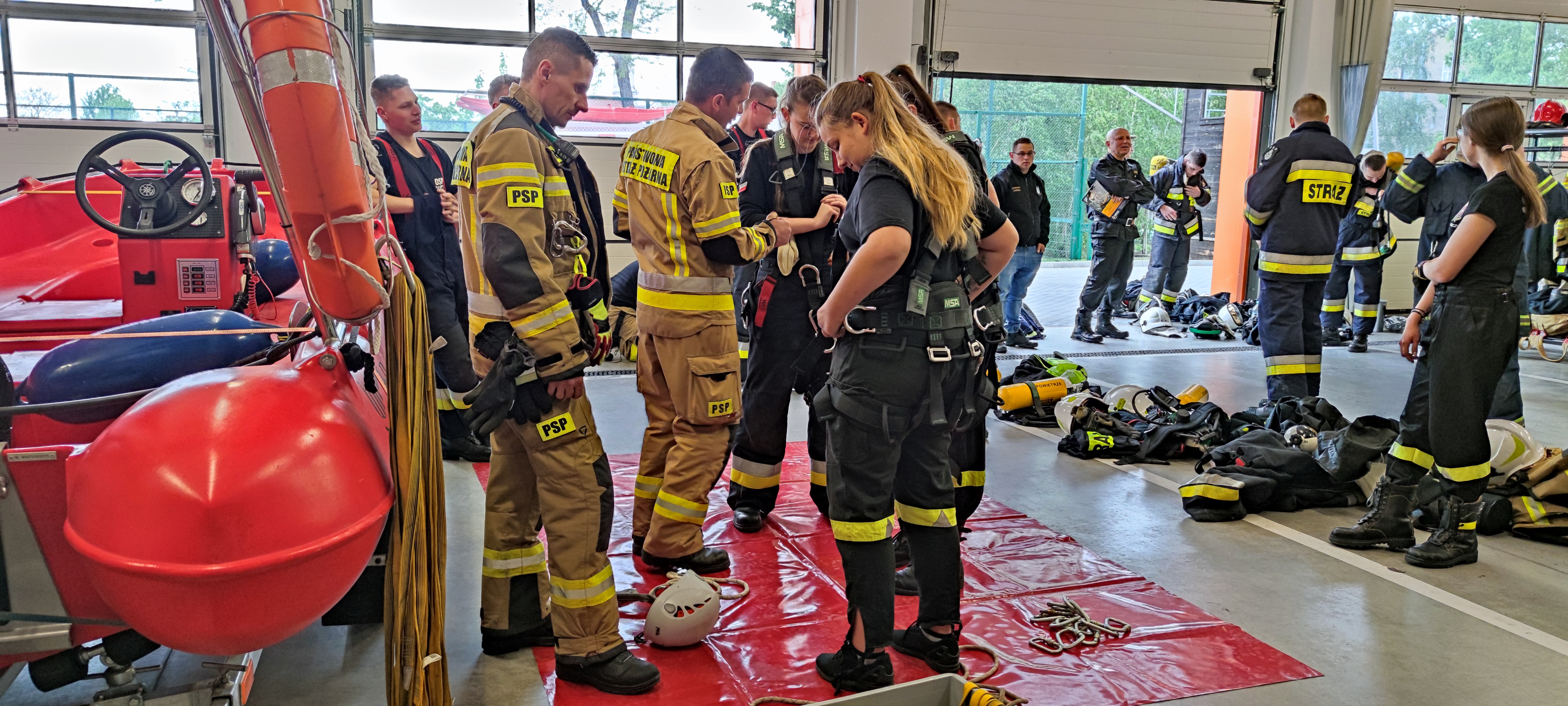 Tym razem, zajęcia odbywały się w siedzibie wolsztyńskiej komendy. W sobotę, kursanci mieli okazję aby sprawdzić nabyte wcześniej umiejętności obsługi aparatów powietrznych w specjalnie ku temu przygotowanemu pomieszczeniu - stworzonej na wzór komory dymowej do której zaliczenia niebawem przystąpią. Zadanie polegało na pracy w aparacie powietrznym w dużym zadymieniu, wśród migających świateł oraz pokonywaniu przeróżnych przeszkód. Ponadto, tego samego dnia słuchacze zapoznawali się z podstawami ratownictwa wysokościowego oraz zasadami obsługi i eksploatacji sprzętu silnikowego.