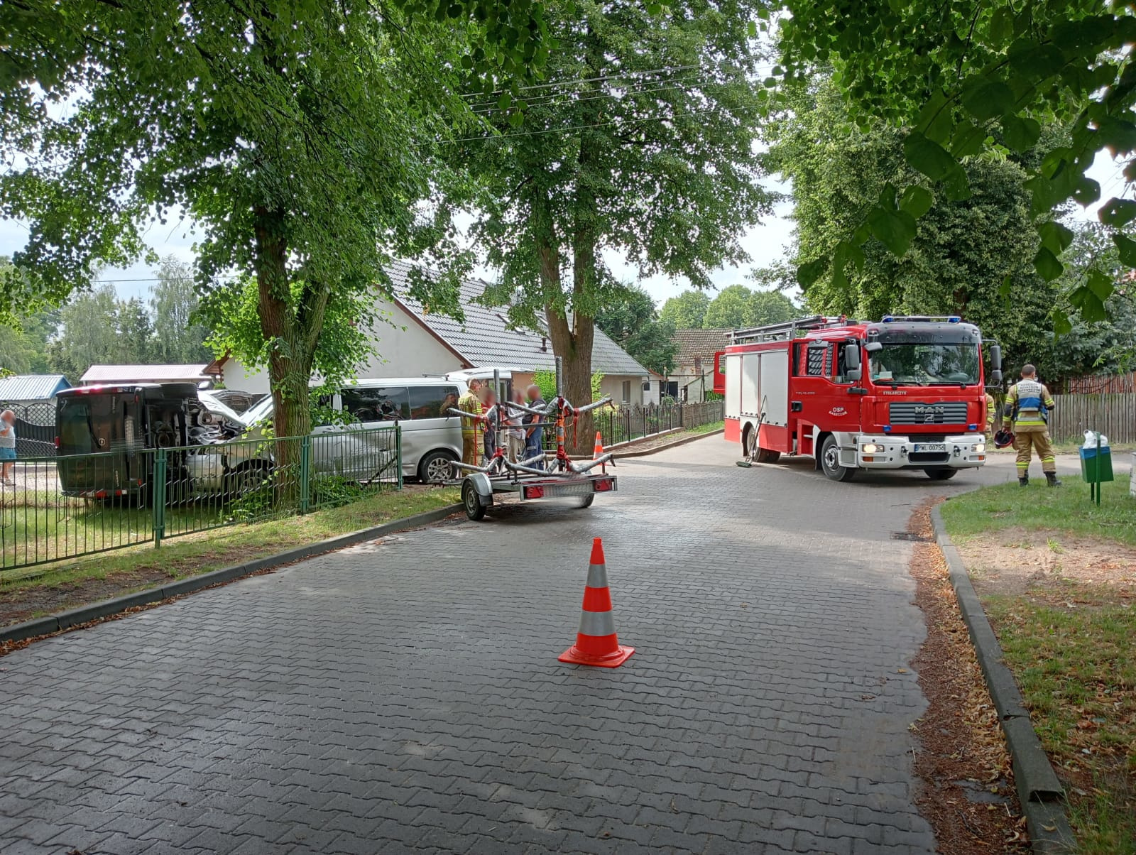 29.07.2023 w Osłoninie doszło do groźnie wyglądającej kolizji dwóch samochodów typu minibus na skrzyżowaniu ulicy Spacerowej i Parkowej. Szczęśliwie żadna z osób nie wymagała pomocy medycznej.