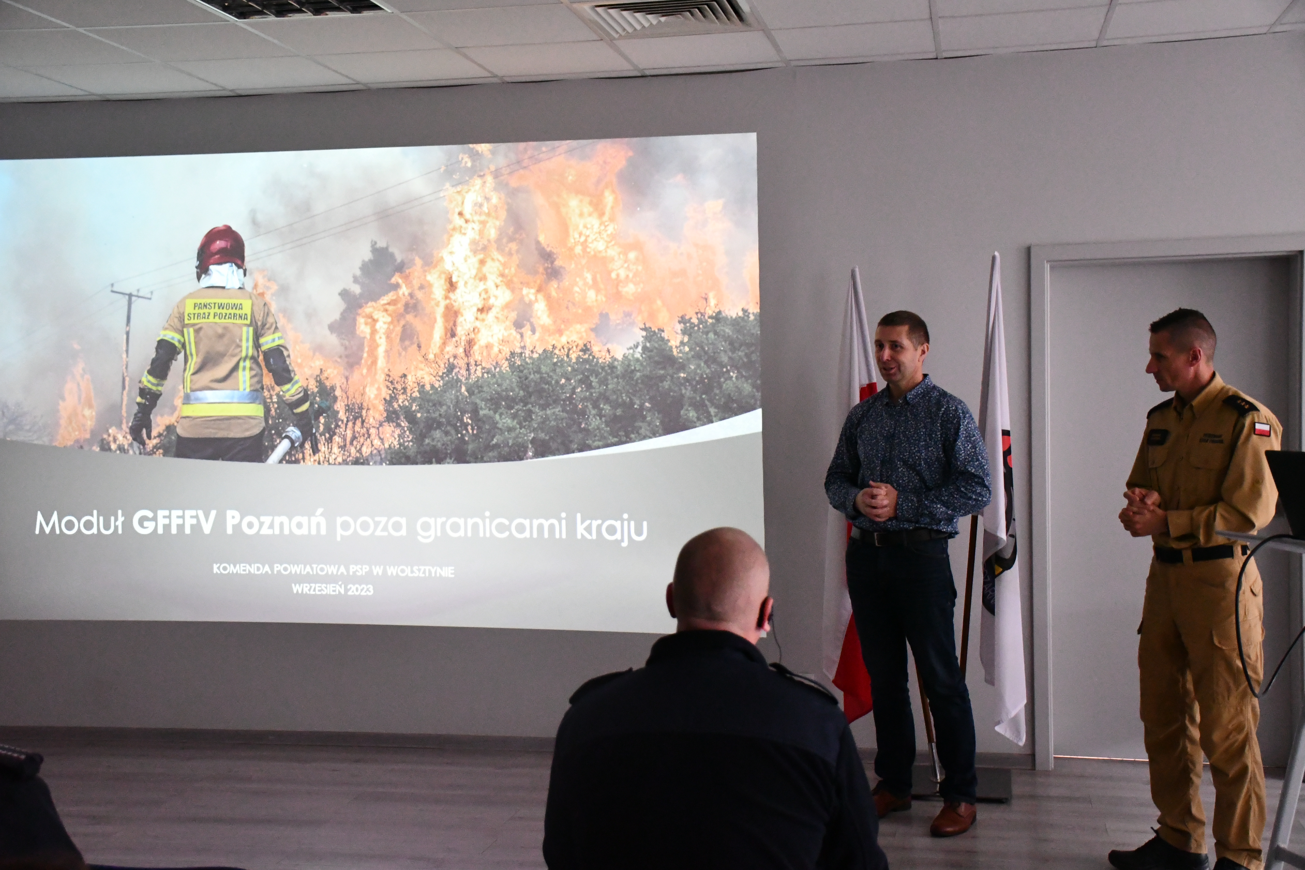 Następnego dnia, po przyjeździe do komendy powiatowej PSP w Wolsztynie zapoznano niemieckich strażaków ze strukturą i zadaniami modułu GFFFV, a także przybliżono przebieg dotychczasowych misji z udziałem wolsztyńskich strażaków. Ponadto zorganizowano warsztaty z zakresu ratownictwa technicznego, co dało możliwość wymiany doświadczeń w praktycznych działaniach.
