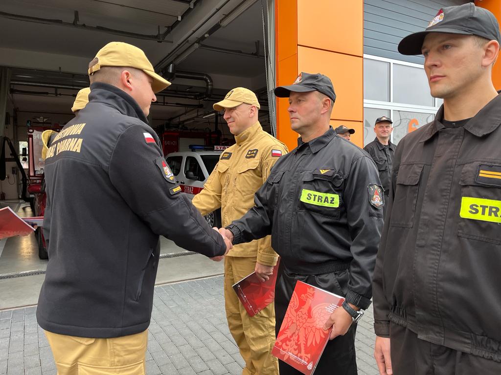 W czwartek 5 października 2023 roku w Jednostce Ratowniczo-Gaśniczej w Wolsztynie odbyła się uroczysta zmiana służby, podczas której wręczono wyróżnienia uczestnikom akcji gaszenia pożarów lasów w Grecji.
