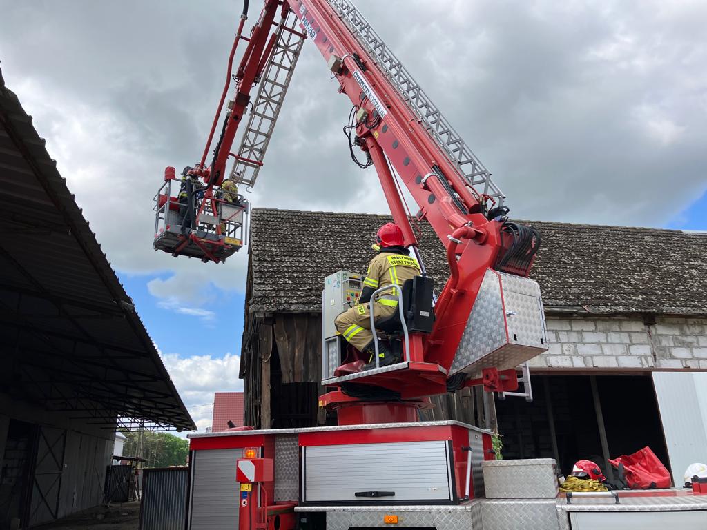 2 czerwca 2023 r. ok godz. 12:00 Dyżurny Stanowiska Kierowania Komendanta Powiatowego Państwowej Straży Pożarnej w Wolsztynie przyjął zgłoszenie dotyczące uszkodzenia poszycia dachowego oraz ściany szczytowej budynku gospodarczego w miejscowości Tuchorza.