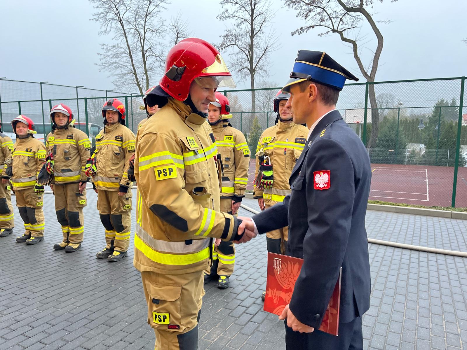 ogn. Andrzej Utrata - swoją służbę w Komendzie Powiatowej Państwowej Straży Pożarnej w Wolsztynie rozpoczął dnia 01.06.2009 r. na stanowisku stażysty. Przez cały okres swojej służby pracował w podziale bojowym wyjeżdżając do akcji ratowniczo - gaśniczych. Odchodzący na zaopatrzenie emerytalne strażak dał się poznać jako zdyscyplinowany i koleżeński funkcjonariusz. Pełniący obowiązki Komendanta Powiatowego Państwowej Straży Pożarnej w Wolsztynie kpt. Damian Glapiak, przedstawiając krótką charakterystykę odchodzącego na zasłużoną emeryturę strażaka, podkreślił jego sumienność oraz duże zaangażowanie w budowaniu zaufania i dobrego wizerunku Państwowej Straży Pożarnej. Komendant w swoim przemówieniu, szczególne słowa uznania, wyraził za pełny profesjonalizm i zaangażowanie w akcjach ratowniczo - gaśniczych, dzielenie się swoim doświadczeniem i dużą wiedzą praktyczną ze współpracownikami oraz zespołem strażaków. Odchodzący Funkcjonariusz przez lata ciężkiej pracy zdobywał cenną wiedzę i doświadczenie, rozwijając swój warsztat umiejętności a jednocześnie stając się wzorem do naśladowania dla kolejnych adeptów pożarnictwa. Wyróżniała go sumienność i pracowitość a zaufanie i szacunek jakim darzą go po dziś dzień koledzy tylko potwierdza tezę, że ogn. Andrzej Utrata w sposób wzorowy wypełnił słowa roty ślubowania.