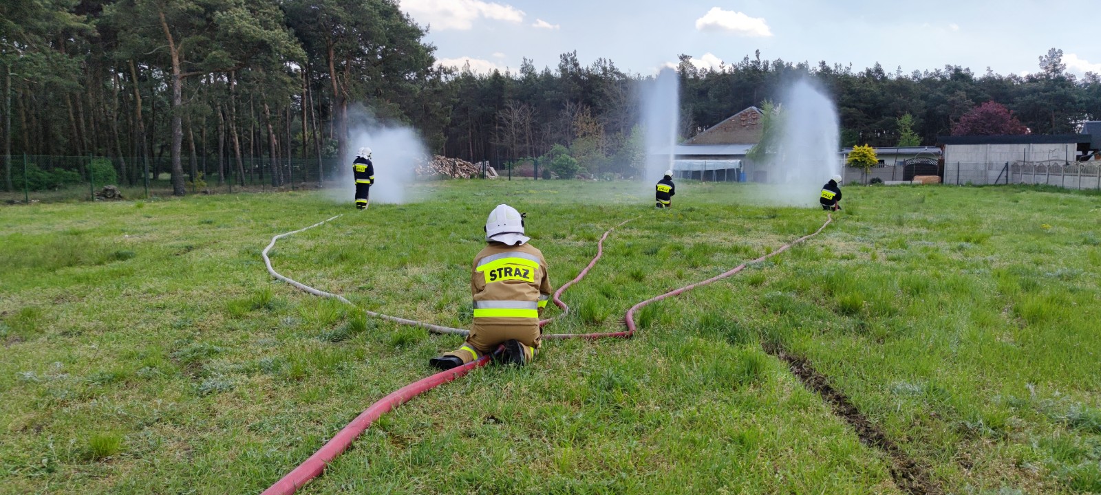 Z uwagi na obowiązujący stan epidemii, zajęcia teoretyczne zrealizowane zostały w formie zdalenj. W miniony weekend, słuchacze kursu mieli pierwszą okazję aby nabytą wiedzę sprawdzić w praktyce. Instruktorzy, przedstawili podstawowe zagadnienia związane z z armaturą wodno-pianową oraz samochodami stosowanymi w pożarnictwie, po czym przystąpiono do realizacji różnych wariantów rozwinięć gaśniczych.