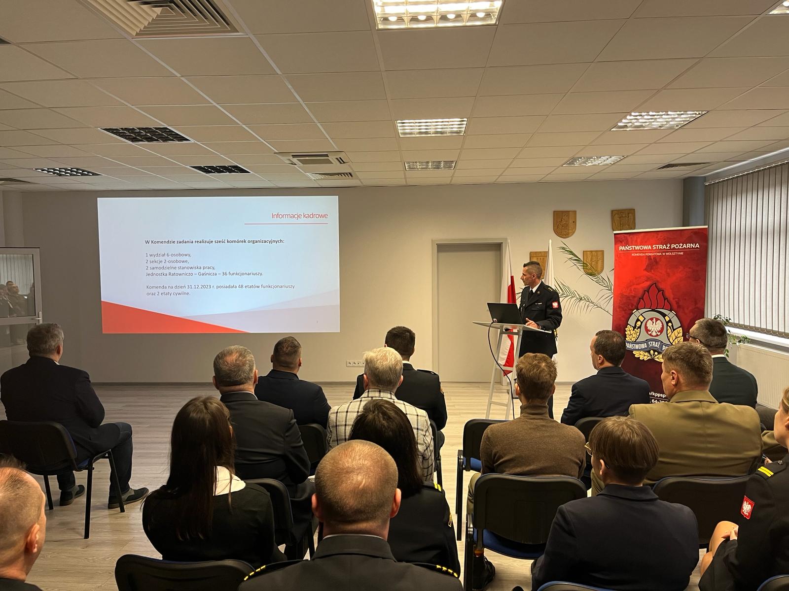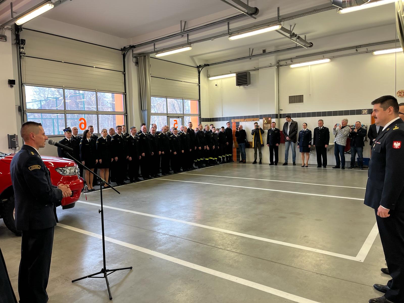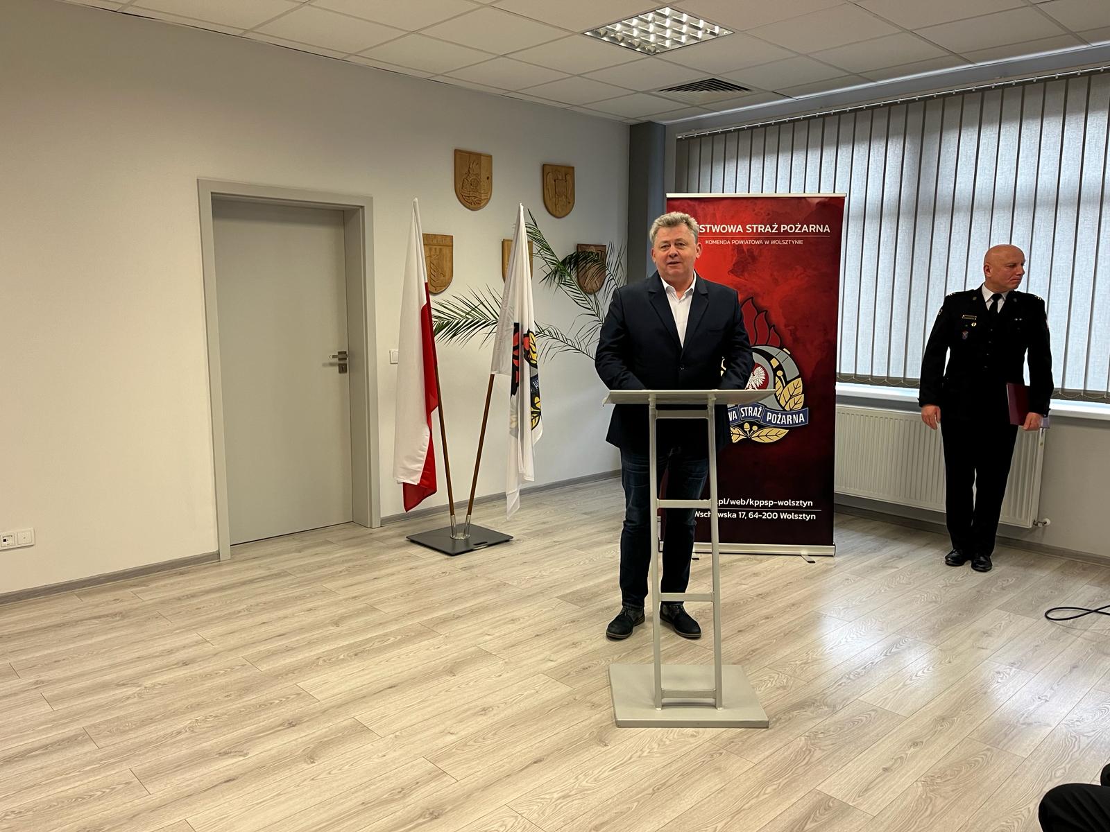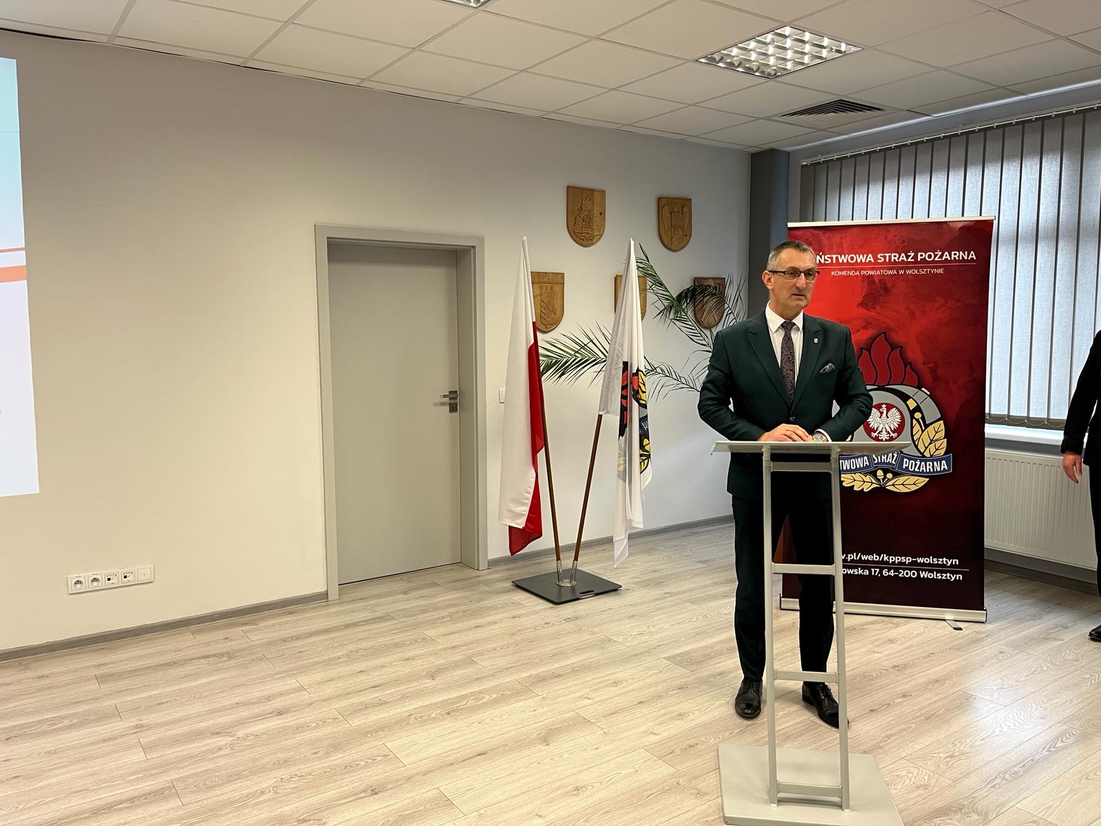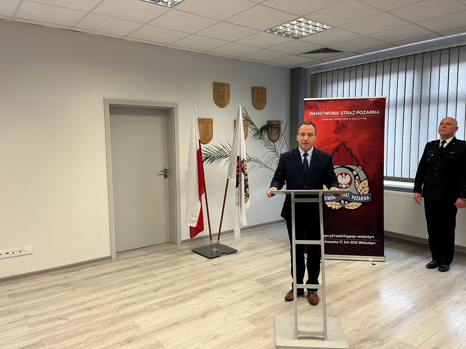 PODSUMOWANIE DZIAŁALNOŚCI KOMENDY POWIATOWEJ PSP W WOLSZTYNIE ZA 2023 ROK ORAZ UROCZYSTE PRZEKAZANIE POJAZDU