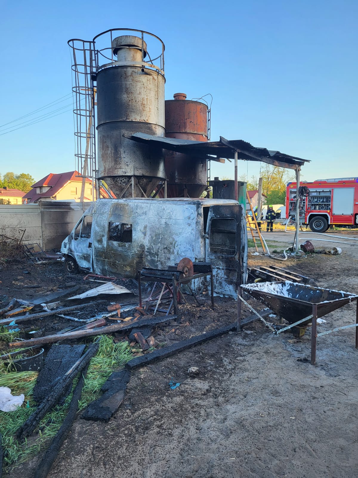 Do zdarzenia niezwłocznie zadysponowano dwa zastępy z Jednostki Ratowniczo – Gaśniczej Wolsztyn, dwa zastępy z OSP Przemęt oraz po jednym zastępie z OSP Kaszczor i OSP Mochy. Po dojeździe na miejsce zdarzenia zastano palący się samochód dostawczy. W bliskiej odległości znajdowała się wiata o konstrukcji drewnianej, mieszalnik do pasz oraz dwa silosy na zboże.