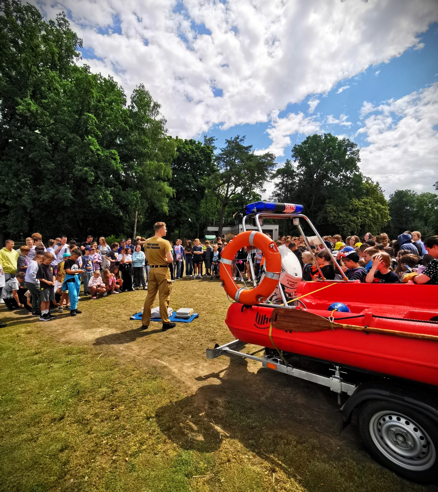 - pokaz działania sprzętu ratownictwa wodnego (deski, koła ratunkowe, łodzie),