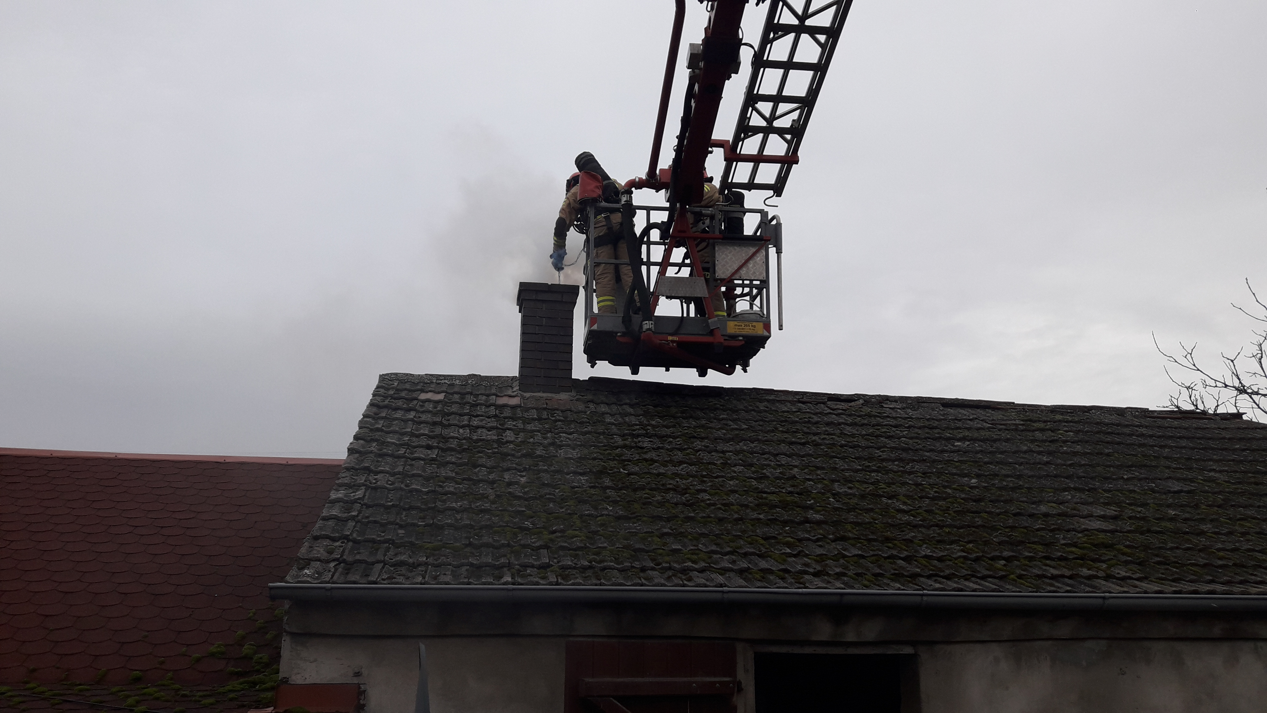 Dyżurny stanowiska kierowania zadysponował do pożaru dwa zastępy z Wolsztyna oraz zastęp OSP Przemęt. Po przyjeździe zastępów straży pożarnej na miejsce zdarzenia zastano ogień wydobywający się z przewodu kominowego budynku gospodarczego połączonego z budynkiem jednorodzinnym.