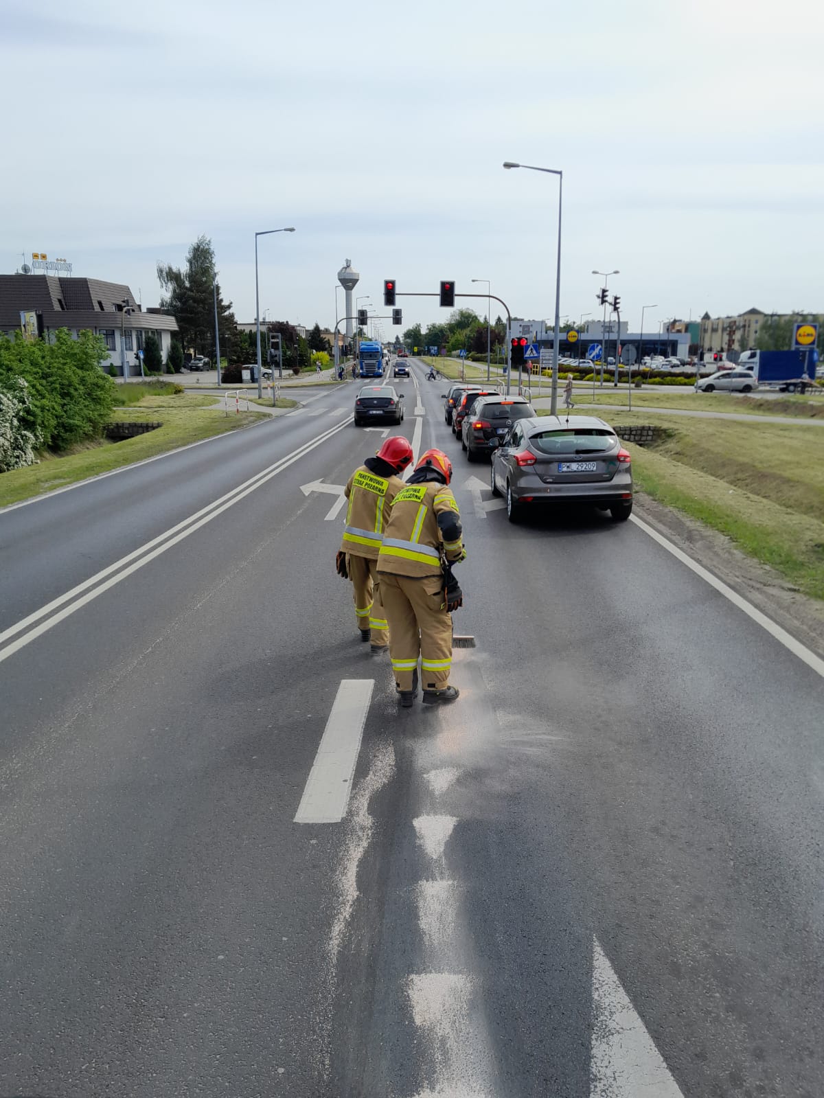 22 maja 2023r. ok godz. 15:00 Dyżurny Stanowiska Kierowania Komendanta Powiatowego Państwowej Straży Pożarnej w Wolsztynie przyjął dwa zgłoszenia dotyczące plamy substancji ropopochodnej w Wolsztynie znajdującej się w okolicy 108 km drogi krajowej nr 32 oraz w przebiegu tej drogi w miejscowości Niałek Wielki. Do działań zadysponowano dwa zastępy z miejscowej Jednostki Ratowniczo-Gaśniczej.