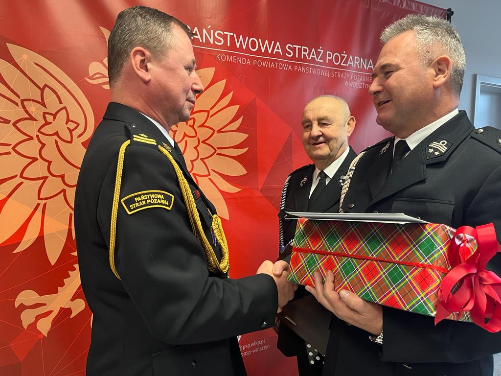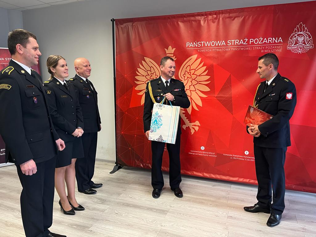03 stycznia 2024 r. w Komendzie Powiatowej Państwowej Straży Pożarnej w Wolsztynie odbyło się spotkanie z okazji zdania obowiązków Komendanta Powiatowego Państwowej Straży Pożarnej w Wolsztynie przez mł. bryg. Przemysława Ruskowiaka, który w dniu 02 stycznia po blisko 30 latach służby, przeszedł na zaopatrzenie emerytalne. Jego obowiązki z dniem 03 stycznia przejmie kpt. Damian Glapiak.