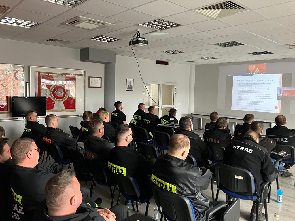Podczas szkolenia poruszone zostały zagadnienia dotyczące podstawowych aktów prawnych z zakresu praw i obowiązków kierujących działaniami ratowniczymi oraz dokumentacji operacyjnej związanej z zasadami dysponowania sił i środków. Omówione zostały również zasady organizacji miejsca prowadzenia działań, punktu przyjęcia sił i środków oraz łączności na potrzeby KDR. Zajęcia prowadzone były w formie on-line przez oficerów Komendy Wojewódzkiej Państwowej Straży Pożarnej w Poznaniu.