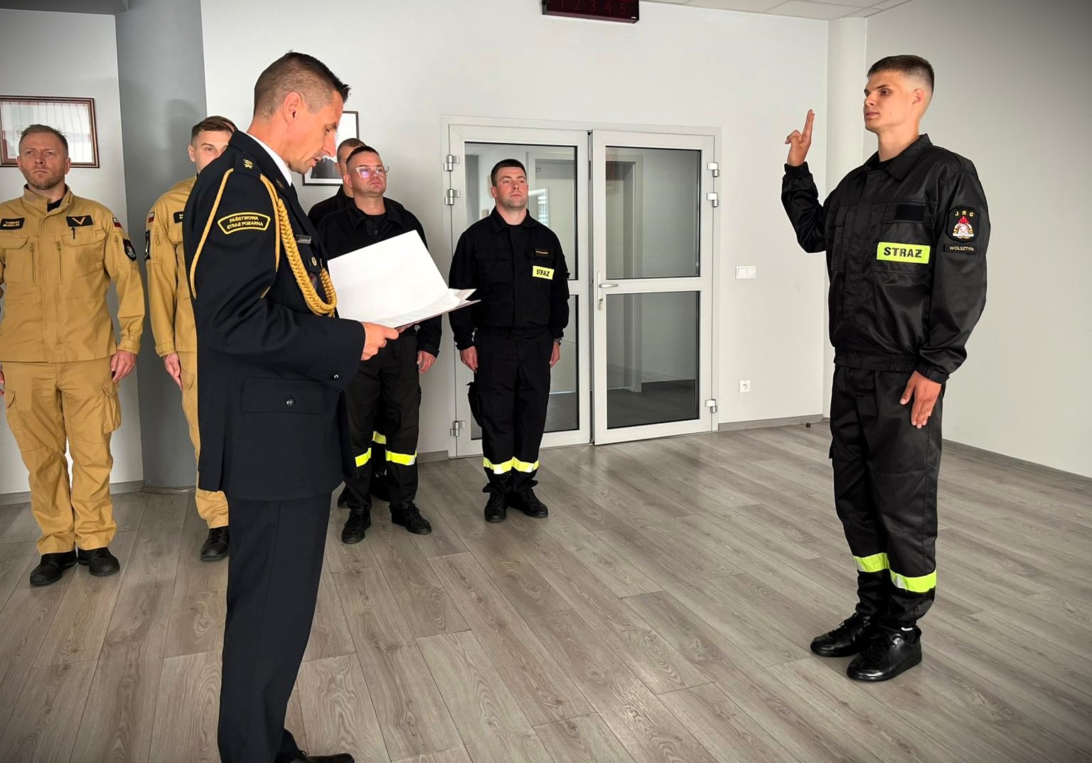 Uroczyste ślubowanie nowego funkcjonariusza w Komendzie Powiatowej PSP w Wolsztynie