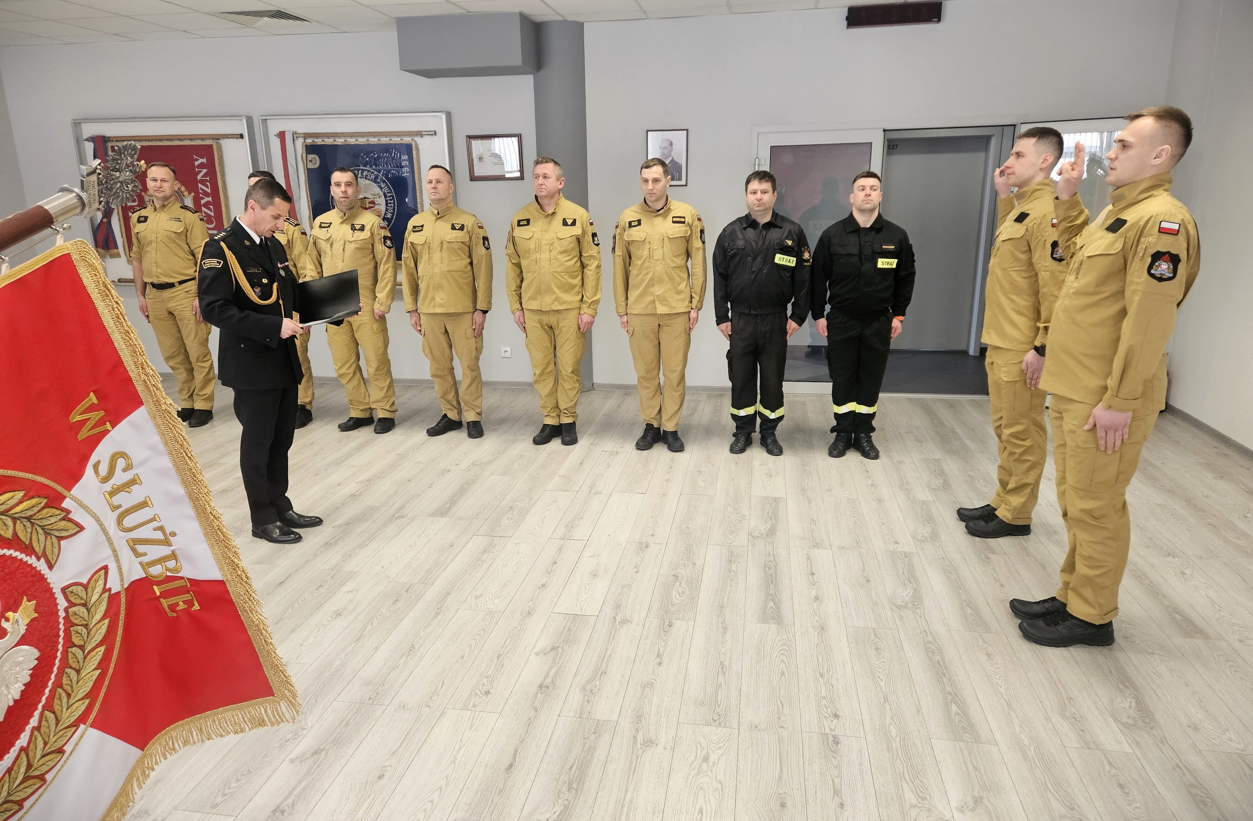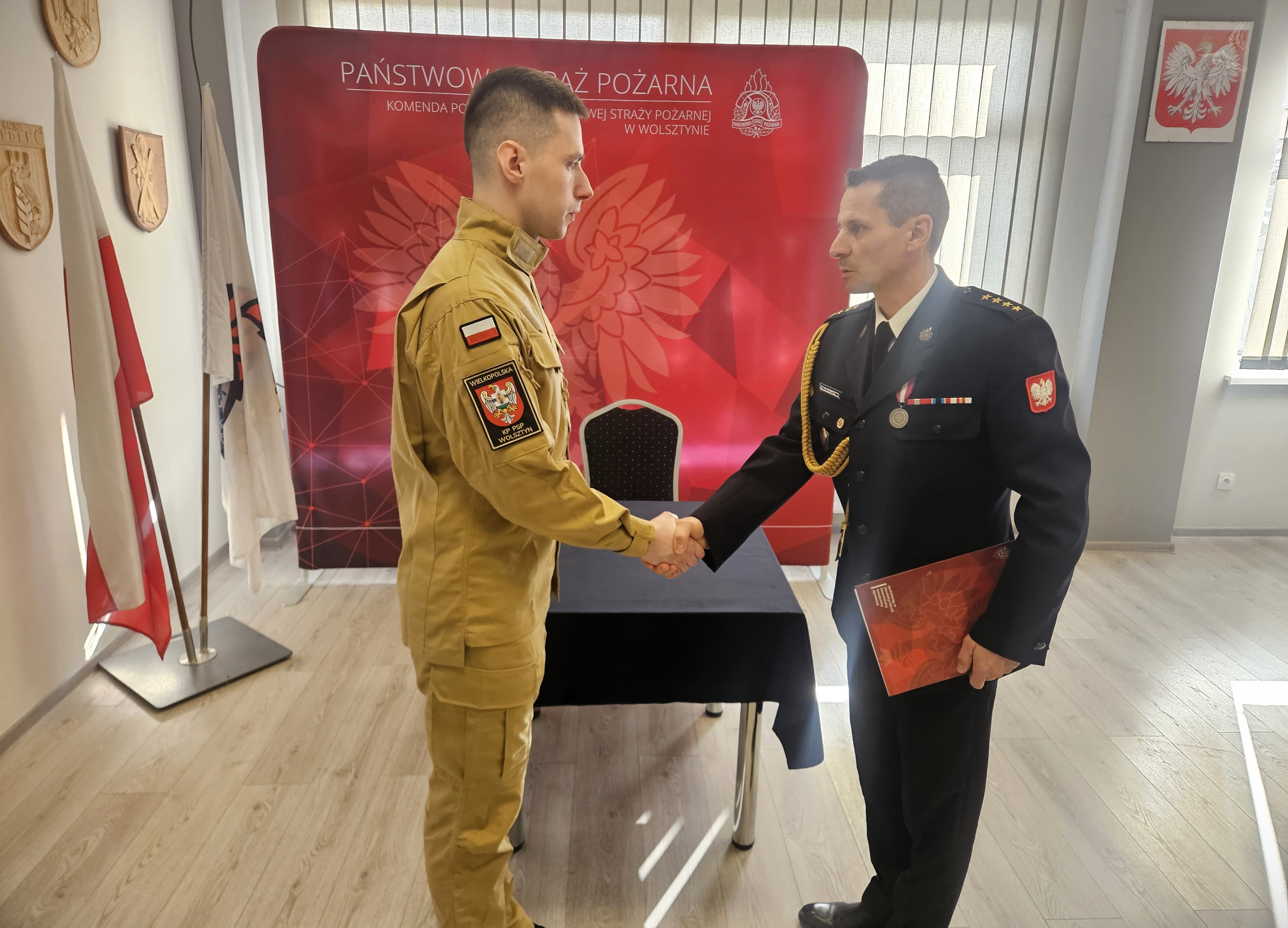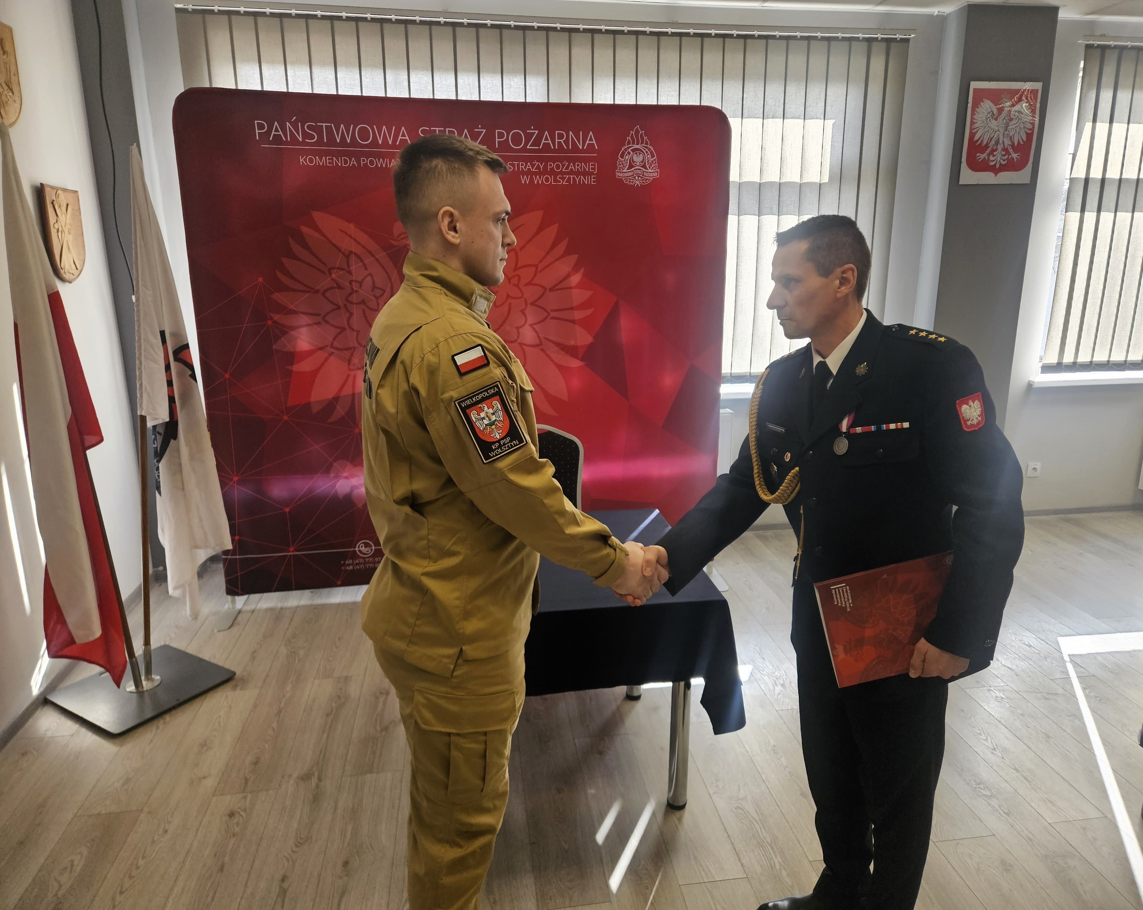 Po złożeniu ślubowania nowi funkcjonariusze podpisali akty ślubowania, które zostały im uroczyście wręczone przez Komendanta Powiatowego PSP w Wolsztynie. Ten moment stanowi nie tylko formalne rozpoczęcie służby, ale również zobowiązanie do codziennego niesienia pomocy potrzebującym – z odwagą, profesjonalizmem i oddaniem.