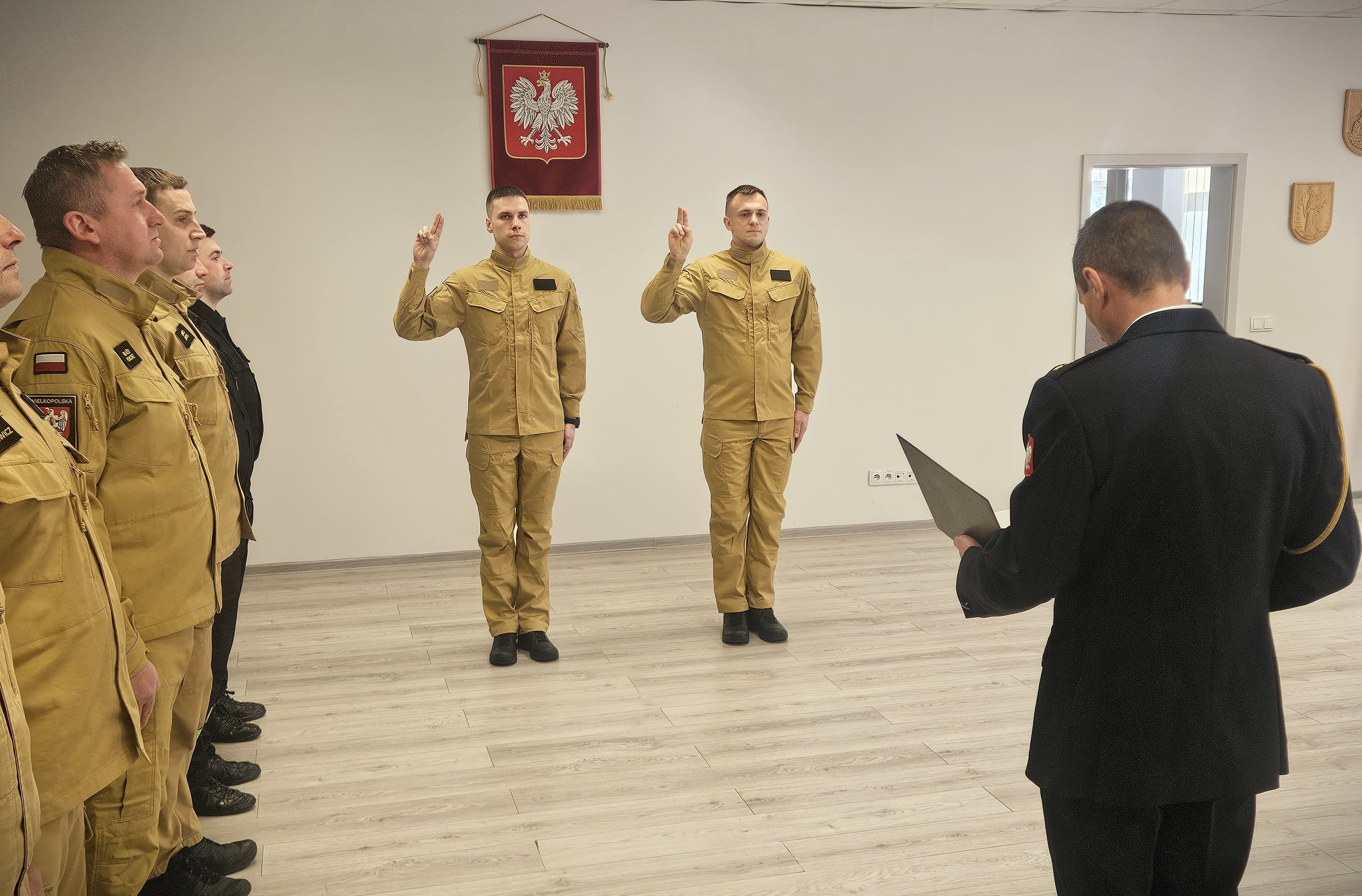 09 marca 2026 roku w Komendzie Powiatowej Państwowej Straży Pożarnej w Wolsztynie, odbyło się uroczyste ślubowanie nowo przyjętych funkcjonariuszy - strażaka Kacpra Ciuka oraz strażaka Mikołaja Rozwalka.