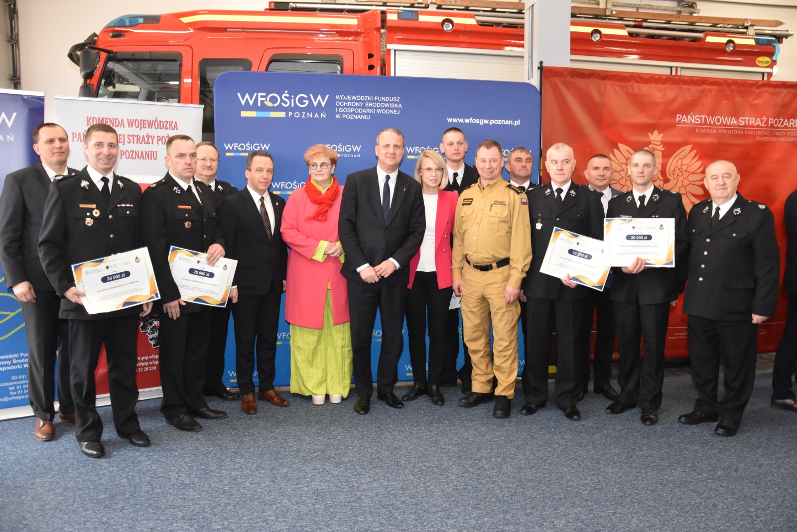 Dnia 24 marca br. w siedzibie Komendy Powiatowej Państwowej Straży Pożarnej w Grodzisku Wlkp. odbyło się uroczyste wręczenie promes dla Jednostek Ochotniczych Straży Pożarnych z terenu powiatu wolsztyńskiego, grodziskiego oraz nowotomyskiego w ramach "Naboru z zakresu ochrony powietrza wspierającego działalność straży pożarnych" oraz „Ogólnopolskiego programu finansowania służb ratowniczych. część 2) dofinansowanie zakupu sprzętu i wyposażenia jednostek Ochotniczych Straży Pożarnych”.
