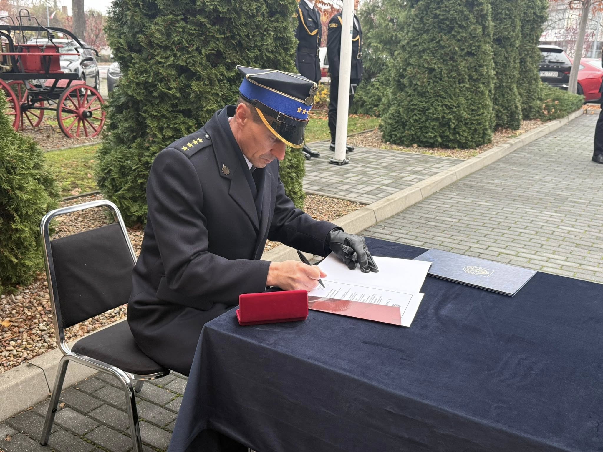 Po wręczeniu aktów awansowych Komendant Powiatowy PSP w Wolsztynie, st. kpt. Damian Glapiak, skierował do zebranych krótkie przemówienie, w którym podziękował funkcjonariuszom za codzienną służbę i zaangażowanie, podkreślając znaczenie tradycji, patriotyzmu oraz współpracy w realizacji zadań Państwowej Straży Pożarnej.