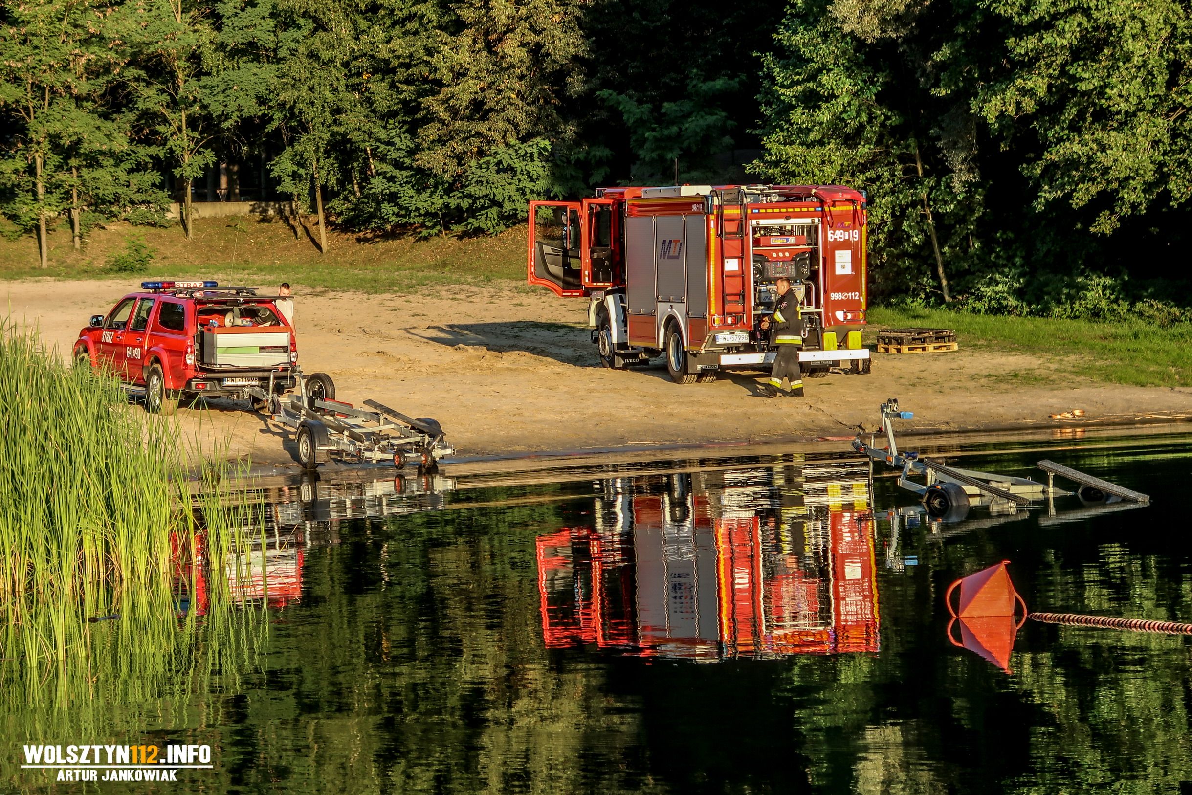 Po dojeździe we wskazane miejsce zastano zastępy straży pożarnej z terenu powiatu nowosolskiego, które zwodowały już swoje jednostki pływające, Policję oraz Zespół Ratownictwa Medycznego. Dyżurny wolsztyńskiego stanowiska kierowania zadysponował zastępy JRG Wolsztyn oraz OSP Świętno z jednostkami pływającymi oraz specjalistyczne grupy ratownictwa wodno-nurkowego z Kościana i Zielonej Góry.