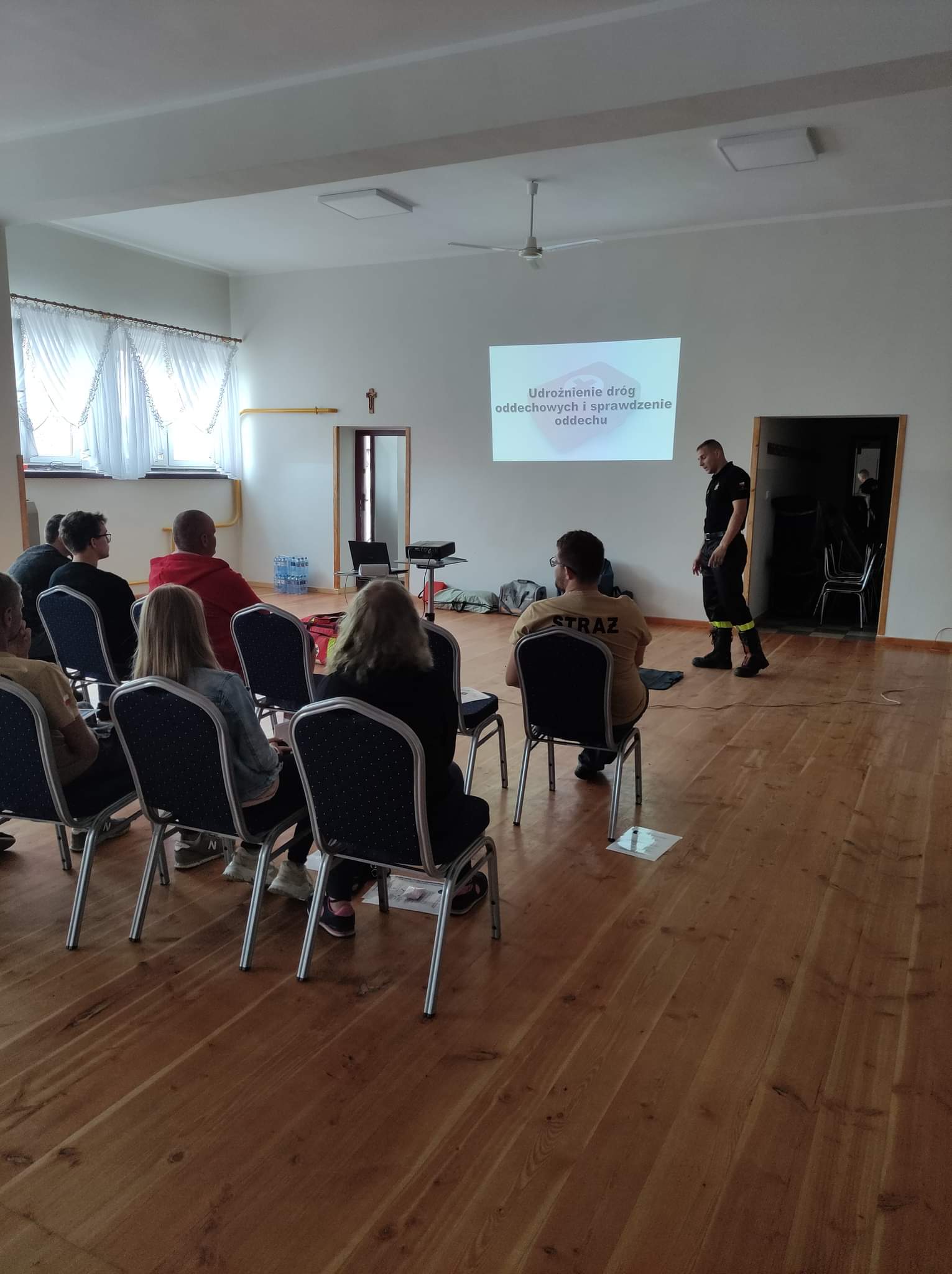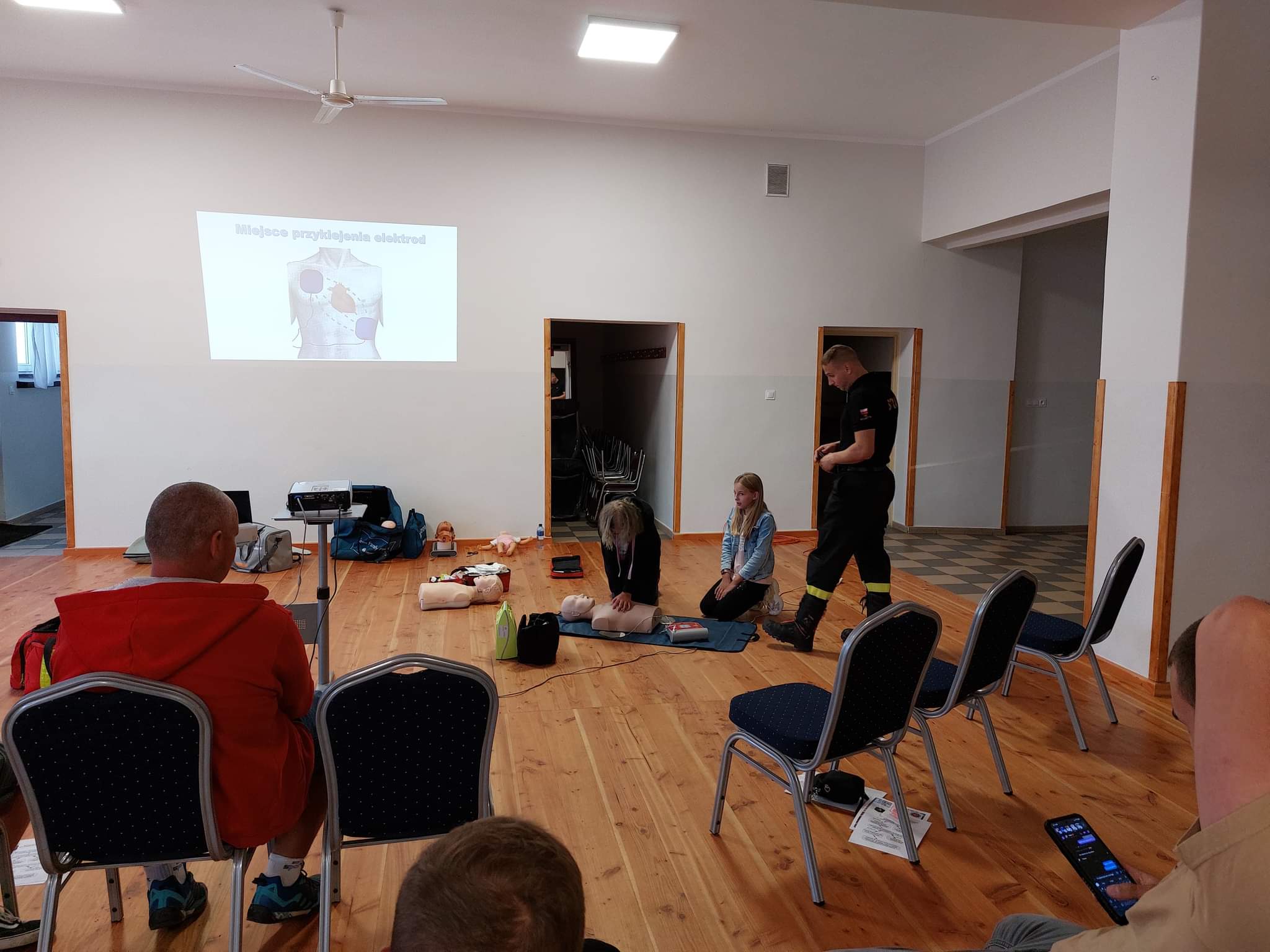 W dniu 30.08.2022 r. w Sali Wiejskiej w Tłokach, odbyły się warsztaty z zakresu udzielania Pierwszej Pomocy dla mieszkańców miejscowości Tłoki.