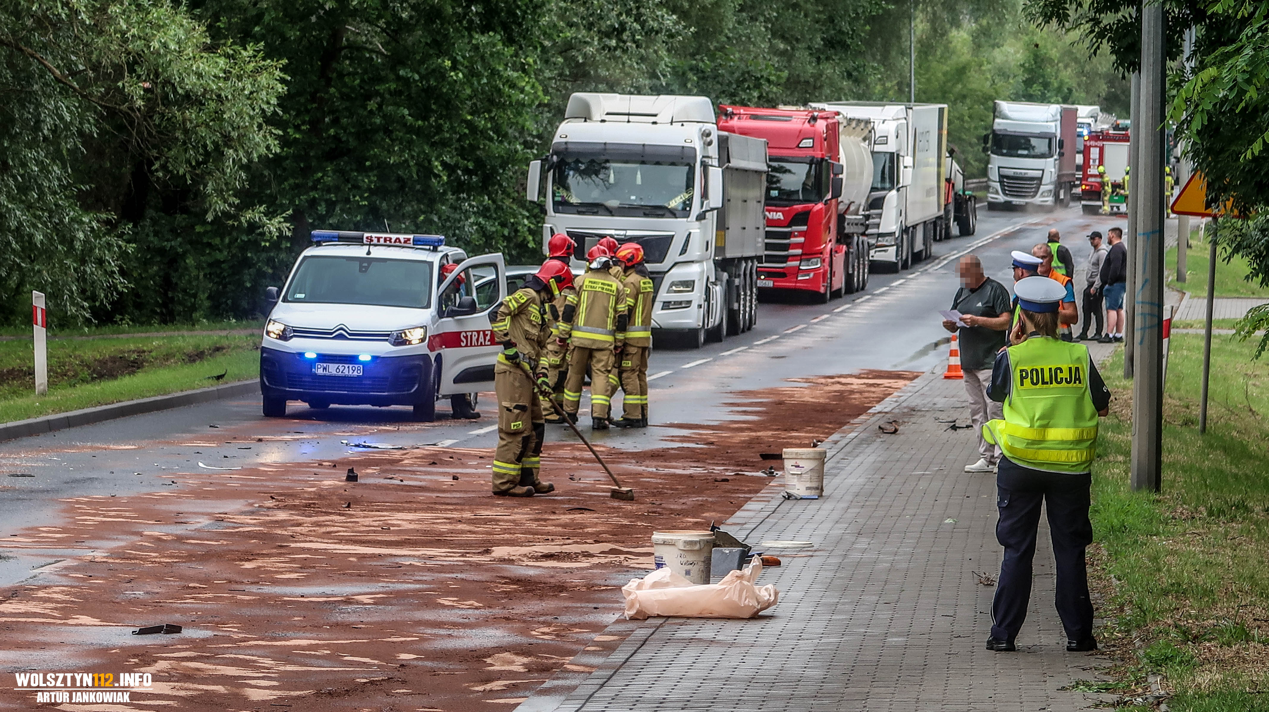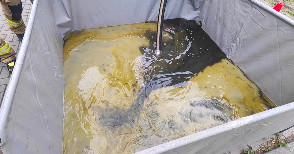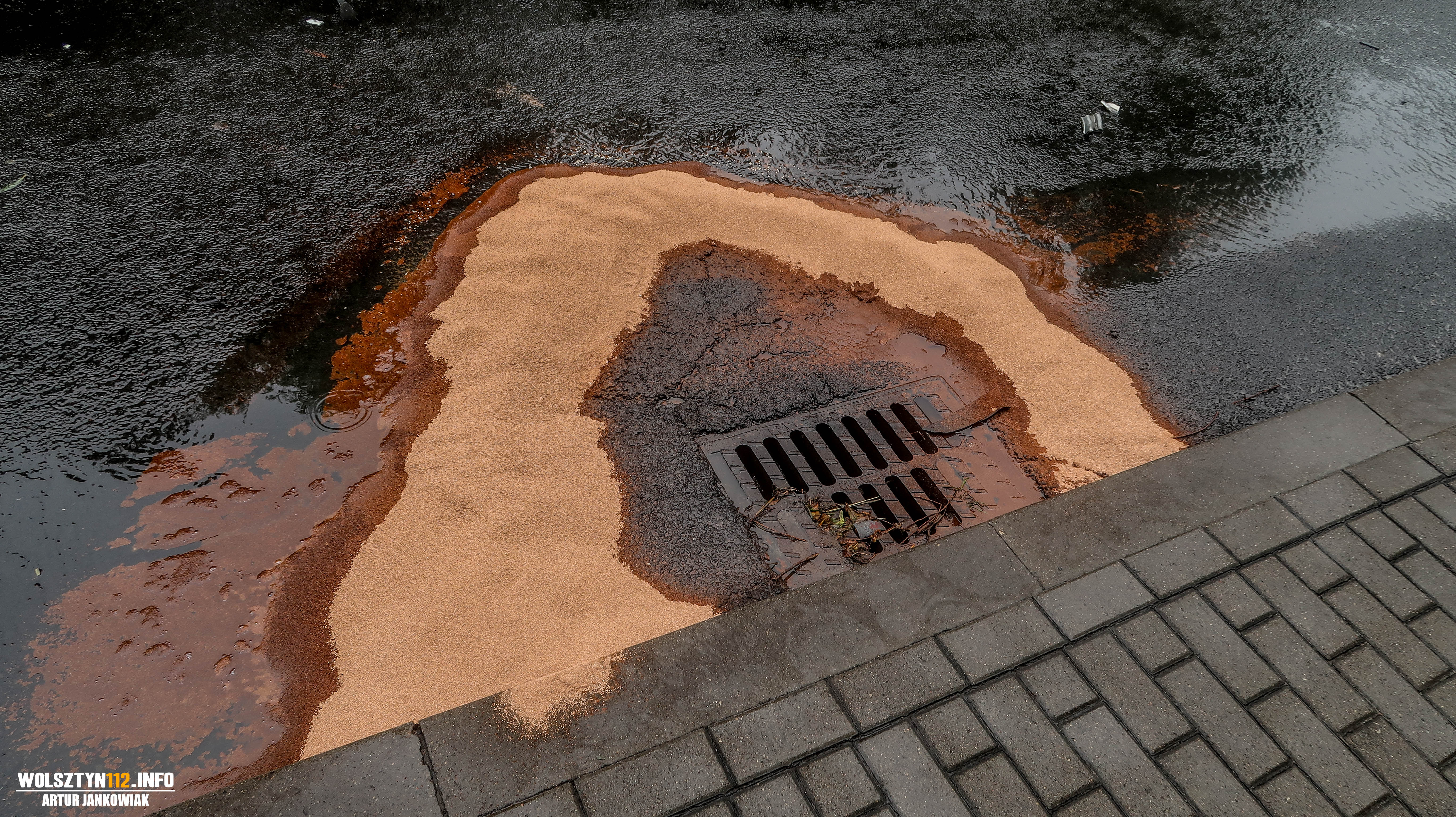 WIELOGODZINNE USUWANIE SKUTKÓW WYCIEKU OLEJU NAPĘDOWEGO NA DK32 W WOLSZTYNIE