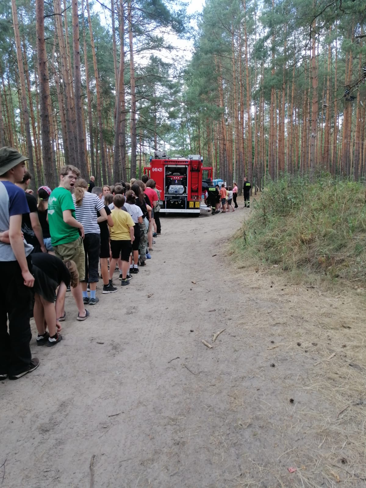 Strażacy Państwowej Straży Pożarnej wykonują czynności kontrolne m. in. w związku z podpisanym przez Komendanta Głównego PSP, Komendanta Głównego Policji, Dyrektora Generalnego Lasów Państwowych oraz organizacjami harcerskimi „Protokołem uzgodnień w zakresie wzmocnienia bezpieczeństwa na obozach harcerskich pod namiotami” z 19 czerwca 2019 roku.