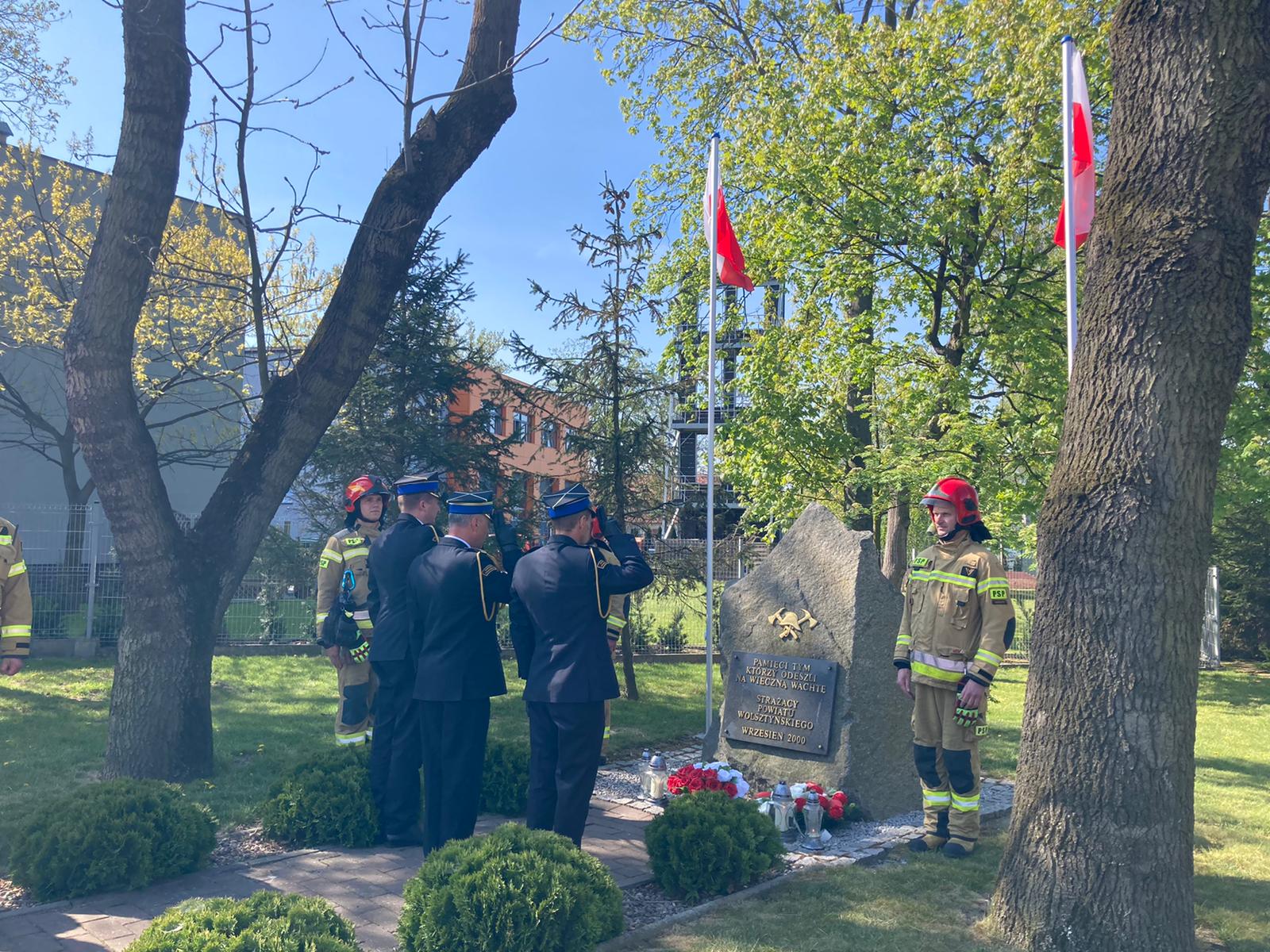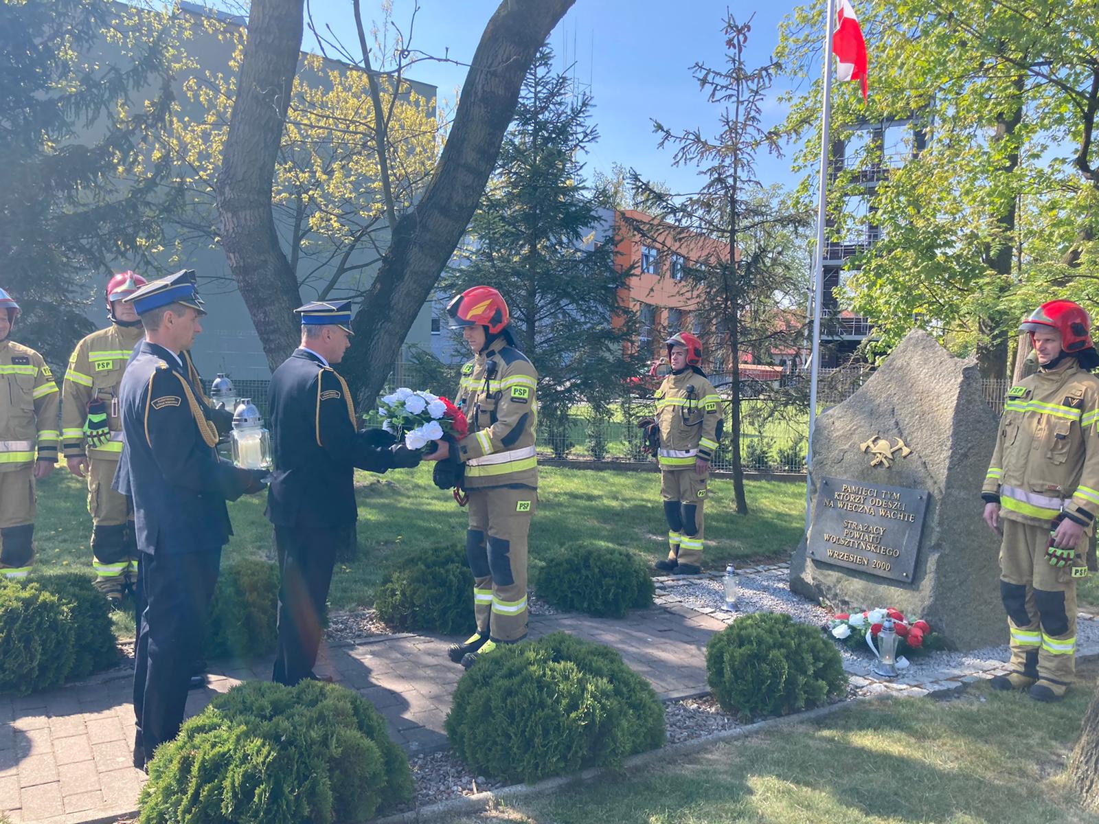 Osobistego złożenia okoliczonościowego wieńca dokonał bryg. Roman Rembielak - Komendant Powiatowy PSP w Wolsztynie w asyście st. kpt. Karola Kędzierskiego - Zastępcy Komendanta Powiatowego PSP w Wolsztynie oraz kpt. Damiana Glapiaka - Dowódcy Jednostki Ratowniczo-Gaśniczej w Wolsztynie, a także zmiany służbowej i pracowników administracji. W ten sposób, oddano hołd wszystkim tym, którzy na przestrzeni lat opuścili strażackie szeregi. Postawiony z inicjatywy wolsztyńskich strażaków pomnik przed budynkiem komendy, od 2000 roku, każdego dnia przypomina o tym, jak trudna a zarazem wymagająca jest codzienna służba na rzecz bezpieczeństwa mieszkańców.
