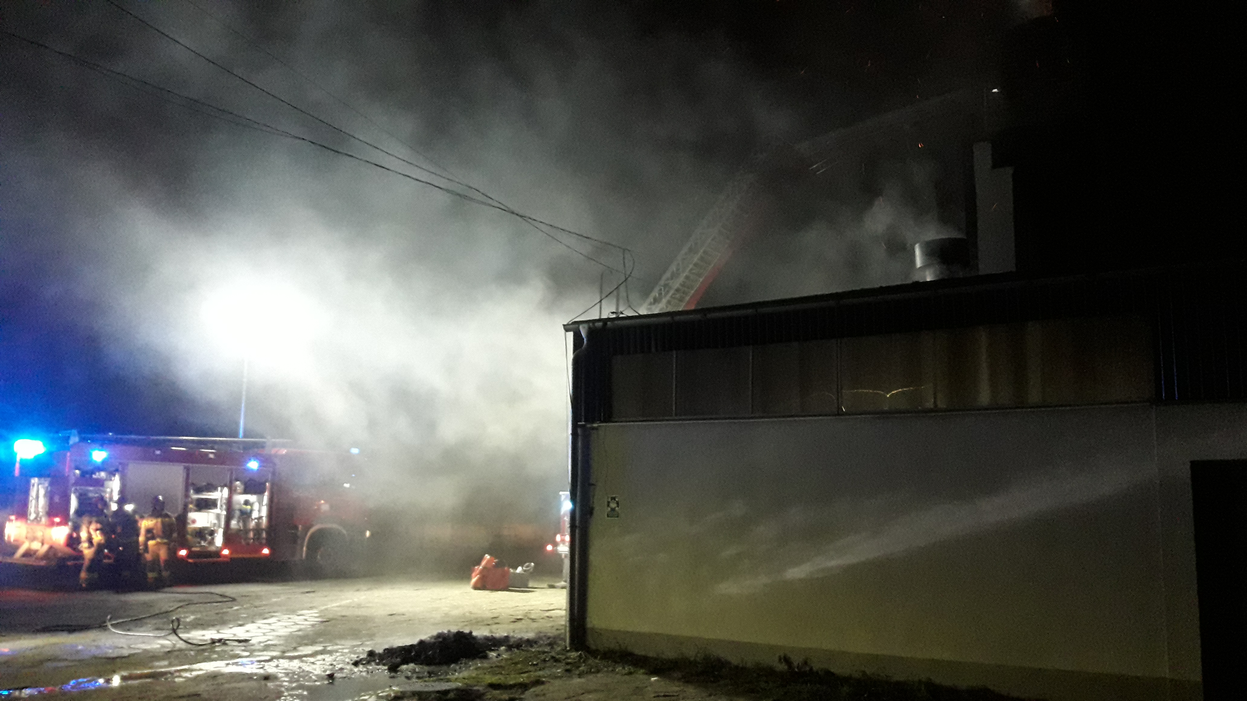 Po przyjeździe zastępów straży pożarnej na miejsce zdarzenia zastano ogień wydobywający się z przewodu kominowego budynku magazynowego. Na miejscu zdarzenia Policja, która poinformowała dowódcę akcji o powiadomieniu palacza jadącego już na miejsce zdarzenia. Kotłownia znajdowała się w szczytowym fragmencie budynku. Kolejne obiekty magazynowe znajdowały się w odległości około 15 metrów - brak zagrożenia.