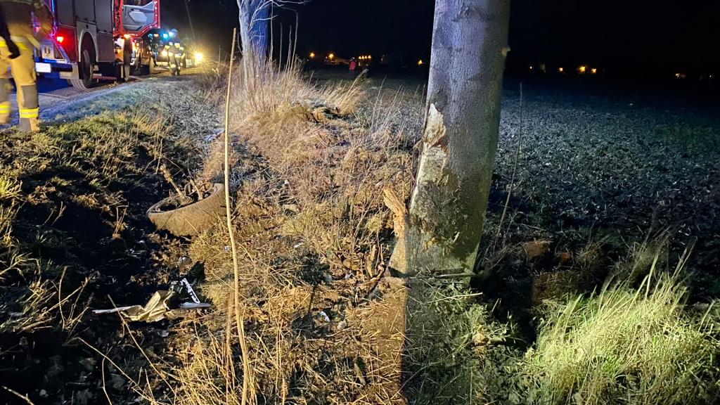 Dnia 16.02.2022 roku o godzinie 21:05, Dyżurny Stanowiska Kierowania Komendanta Powiatowego PSP w Wolsztynie odebrał zgłoszenie o wypadku drogowym na trasie Godziszewo-Zakrzewo (gm. Siedlec). Z informacji wynikało, że kierowca próbuje się wydostać przez bagażnik, czuć zapach benzyny, plama na drodze.
