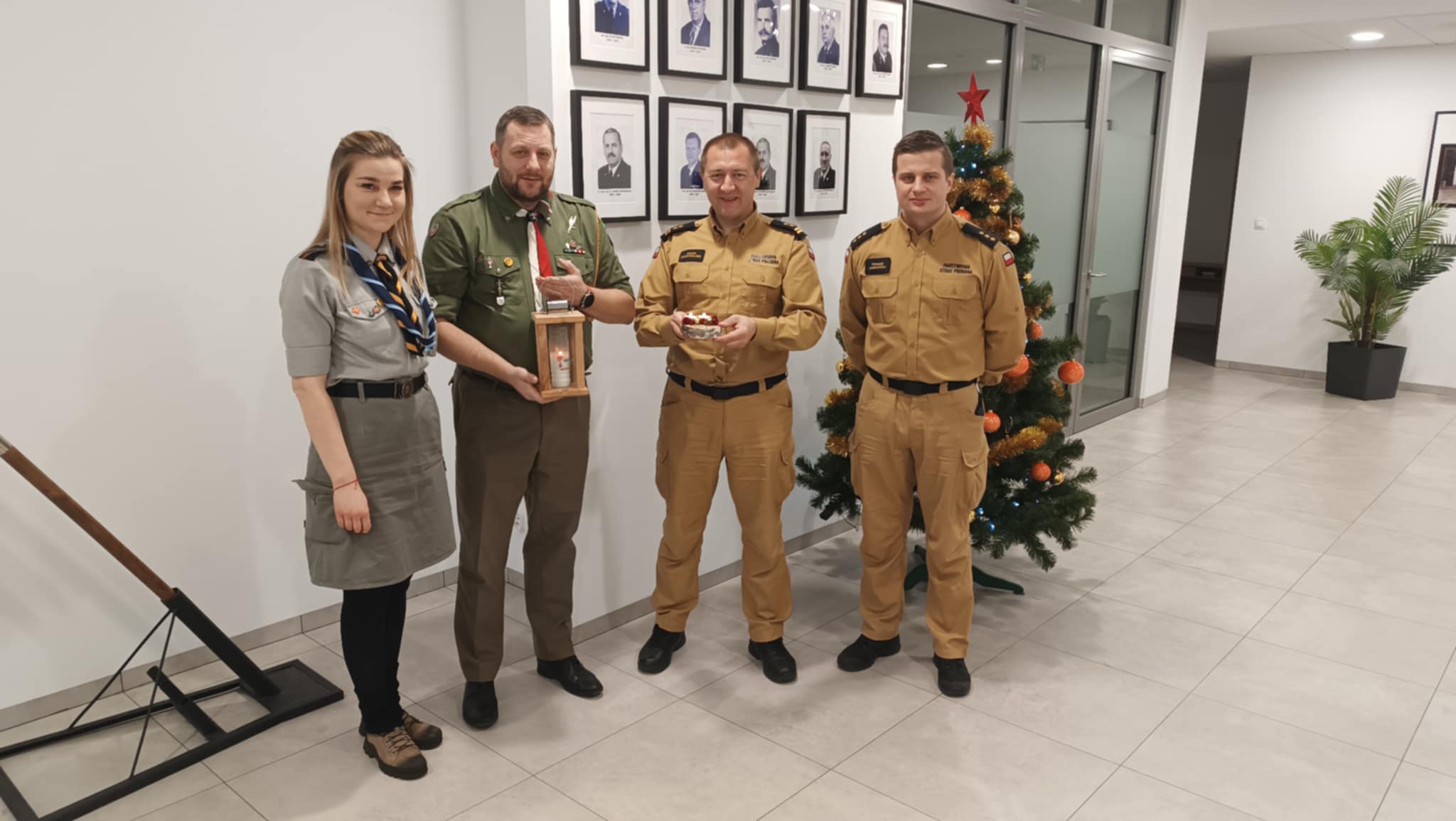 19 grudnia do Komendy Powiatowej Państwowej Straży Pożarnej we Wrześni wraz z Betlejemskim Światłem Pokoju dotarli: komendant Chorągwi Wielkopolskiej ZHP harcmistrz Maciej Siwiak oraz komendantka wrzesińskiego Hufca ZHP "Wrzos" harcmistrzyni Agnieszka Tobolska.