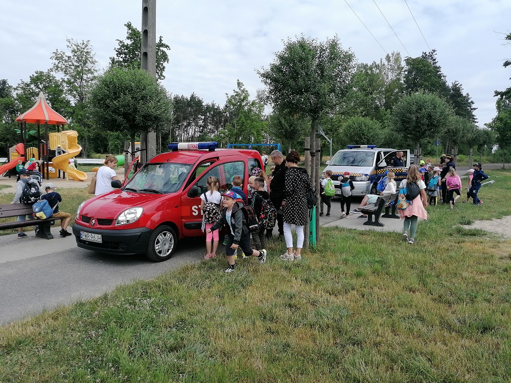 Policjanci z Komendy Powiatowej Policji we Wrześni, strażnicy Straży Miejskiej we Wrześni oraz strażacy z Komendy Powiatowej Państwowej Straży Pożarnej we Wrześni zorganizowali 23 czerwca br. terenowe zajęcia profilaktyczne. Odbiorcami spotkania byli uczniowie klas 0-3 Samorządowej Szkoły Podstawowej nr 1.