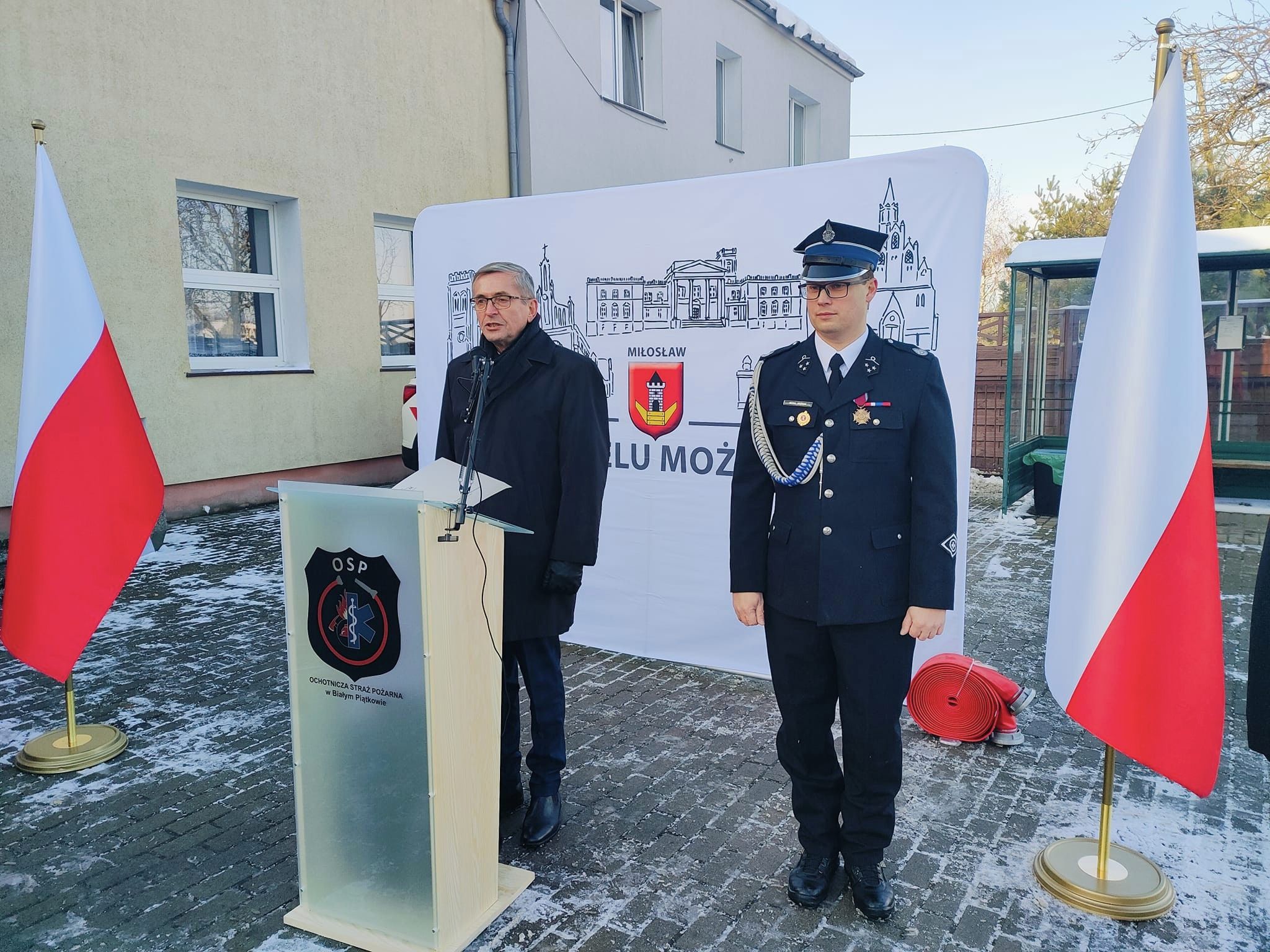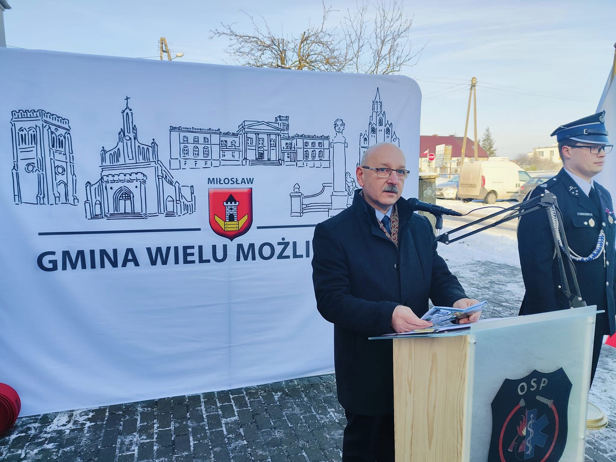 W uroczystości uczestniczyli:P oseł na Sejm RP Tadeusz Tomaszewski, zastępca wielkopolskiego komendanta wojewódzkiego Państwowej Straży Pożarnej st. bryg. Tomasz Grelak, komendant powiatowy Państwowej Straży Pożarnej we Wrześni st. bryg. Piotr Trawiński oraz szef lokalnych struktur PiS Przemysław Hirszfeld, Burmistrz Miasta i Gminy Miłosław Hubert Gruszczyński oraz miejscowi samorządowcy.