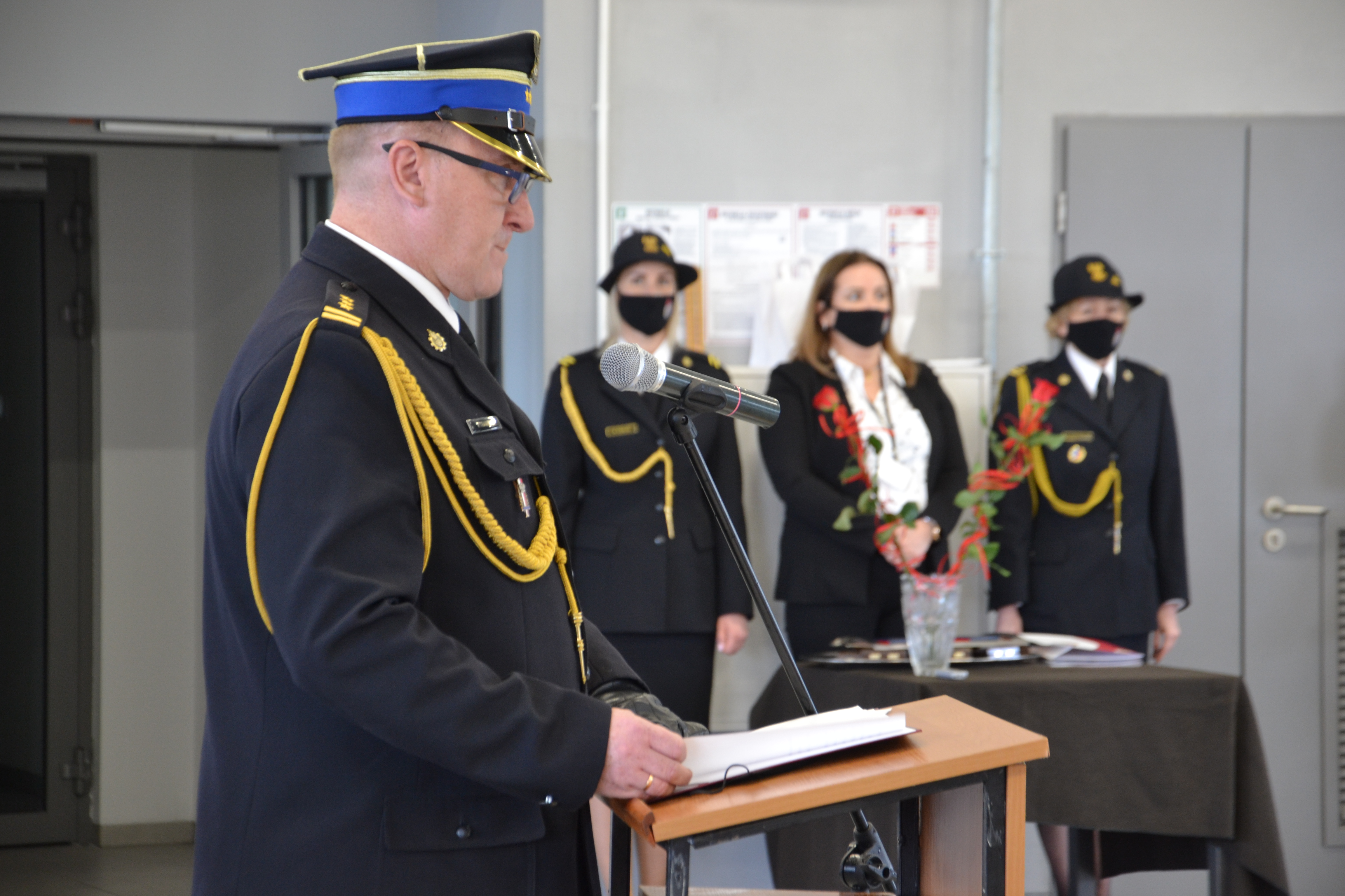 W okolicznościowym przemówieniu Komendant Powiatowy PSP we Wrześni – st. bryg. Piotr Trawiński dokonał krótkiego podsumowania działalności zawodowej straży pożarnej na terenie powiatu wrzesińskiego w związku z 70 rocznicą jej powołania. Podziękował również strażakom zarówno z PSP jak i druhom z OSP za codzienną gotowość do niesienia pomocy drugiemu człowiekowi. Słowa uznania oraz wdzięczności padły również do wszystkich osób i instytucji wspomagających straż pożarną na terenie powiatu.