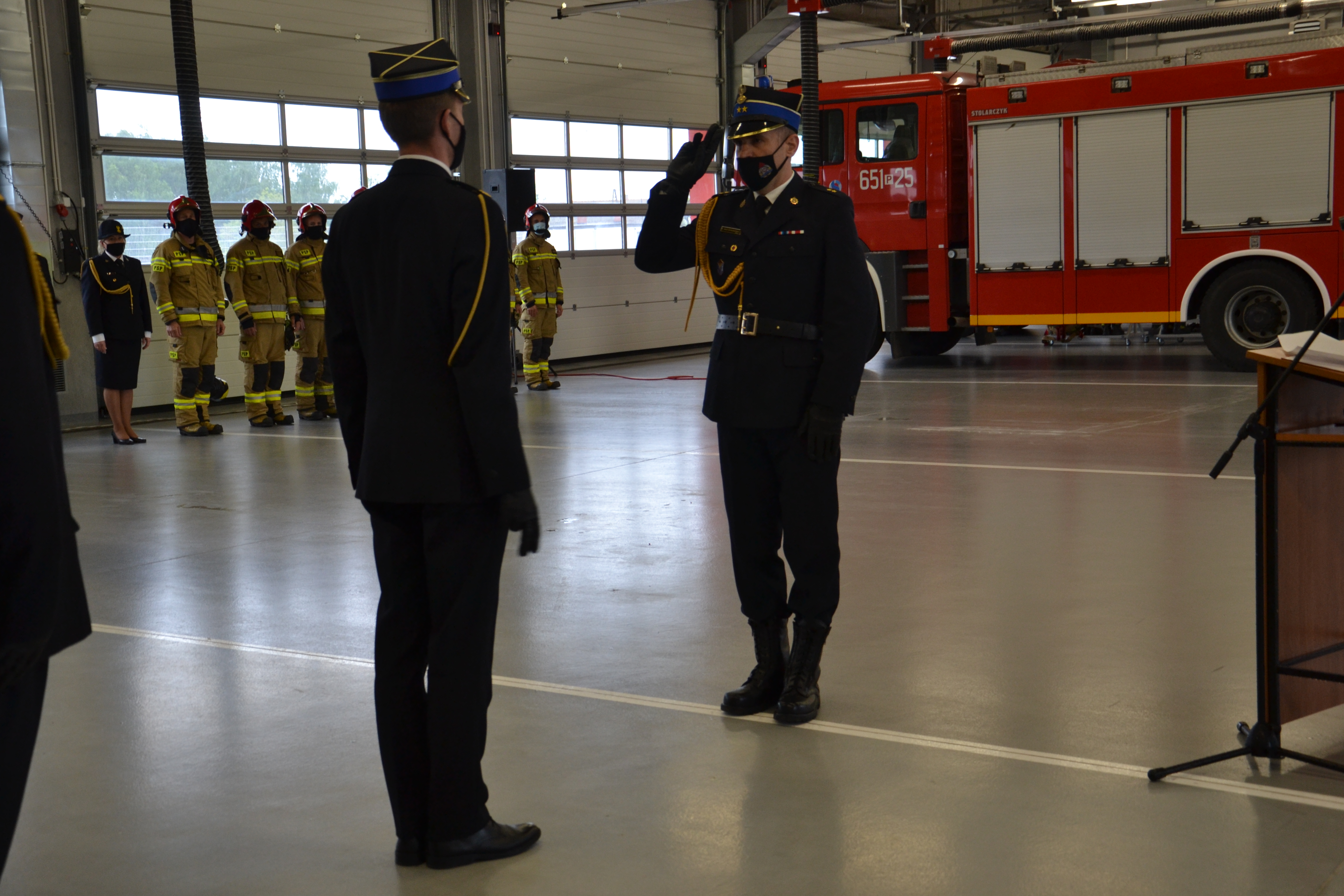 W piątek 28 maja w hali garażowej Komendy Powiatowej Państwowej Straży Pożarnej we Wrześni odbyła się uroczysta zbiórka z okazji Dnia Strażaka. Zbiórka rozpoczęła się o godzinie 13:00 złożeniem meldunku przez dowódcę uroczystości mł. kpt. Roberta Brzymyszkiewicza przedstawicielowi Wielkopolskiego Komendanta Wojewódzkiego Państwowej Straży Pożarnej w Poznaniu bryg. Tomaszowi Grelakowi, następnie minutą ciszy uczczono pamięć wszystkich strażaków, którzy przegrali walkę z chorobą Covid – 19. Tegoroczne obchody miały szczególny wymiar związany z trwającą epidemią. Obecni byli tylko strażacy tutejszej Komendy oraz nieliczni goście: