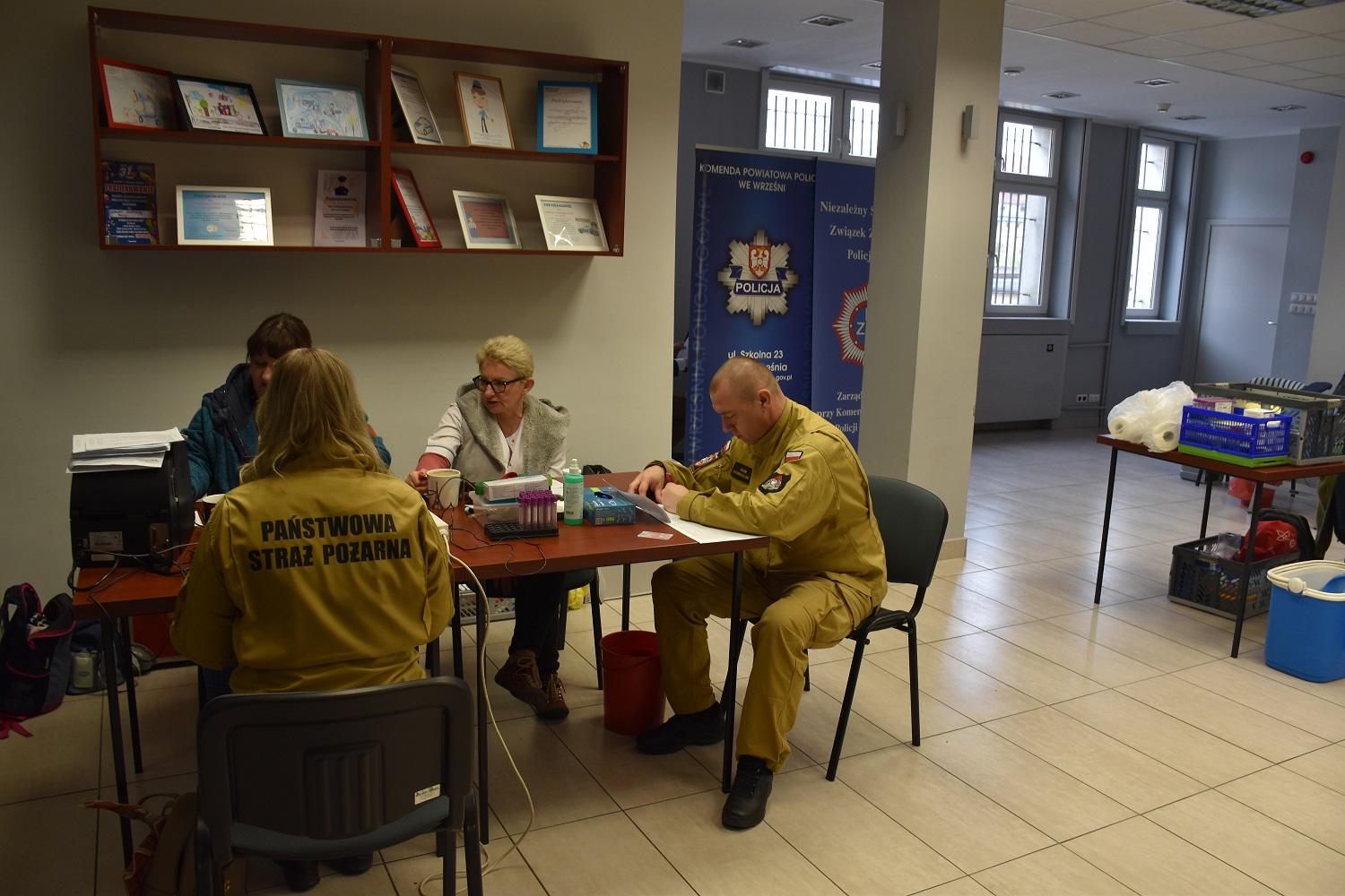 Wrzesińscy policjanci wspólnie ze strażakami zorganizowali honorową zbiórkę krwi. Każda kropla krwi się liczy - przecież to nic nie kosztuje. Nie bójmy się pomagać. To tylko dwa ukłucia, które mogą uratować ludzkie życie.